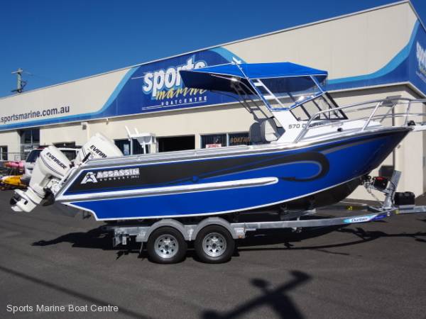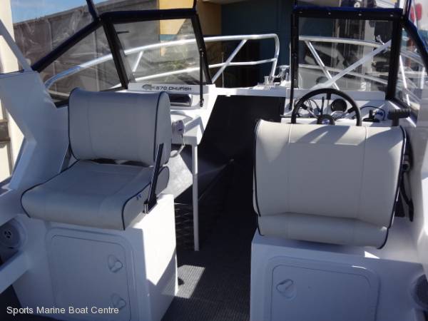 LATEST MODEL 570 RUNABOUT THATS BEEN CUSTOMISED TO EXACTLY WHAT THE EXCITED NEW OWNER WANTS.. FEATURES INCLUDE WALK THRU DASH TO ACCESS THE ANCHOR WELL WHERE THE STRESS FREE ANCHOR WINCH IS HOUSED, DECK WASH, KILL TANK, TRIM TABS, FOAM FLOATATION, DELUXE BAITBOARD, FOLDING TARGA BAR, SIDE RAILS, STAINLESS STEEL FRAMED BIMINI/CLEARS, NAV/DECK LIGHTS, VHF RADIO, GREAT ELECTRONICS... POWERED BY THE SUPA FUEL EFFICIENT 150HP EVINRUDE AND BACKED UP BY A 25HP EVINRUDE AUXILLARY MOTOR...