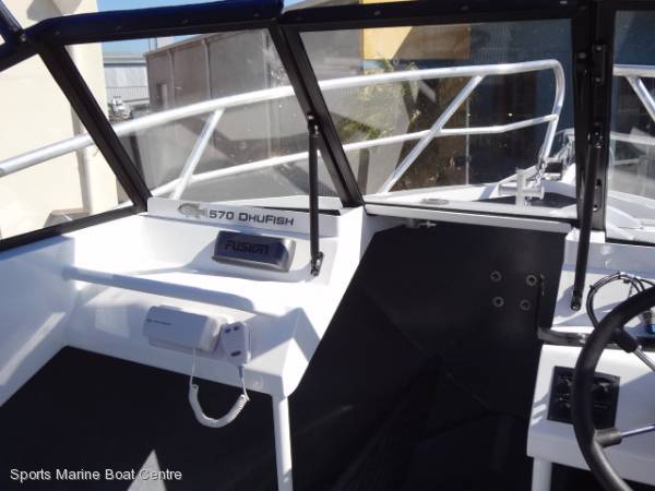 The deluxe bait board, deck wash, kill tank, folding targa bar, side rails and stainless-framed bimini show it's well set up for fishing and comfort. Plus, with quality electronics, VHF radio, and navigation lighting, it's ready for action day or night.