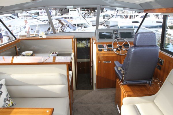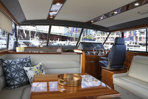 The C40 Express has a few more colour options than available on the flybridge model, with a larger range of soft furnishings and interior features. The high gloss teak features and a squared off counter-top profile compliment the quality fittings throughout. The internal fitout is certainly impressive.