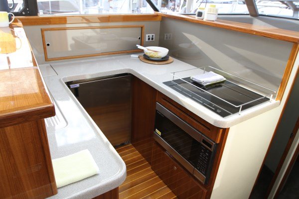 This is a feature of all C40's that owners love. Masses of bench space, BIG Utec refrigeration / fridge and chest freezer, convection microwave / oven combo, and plenty of drawers and cupboards.