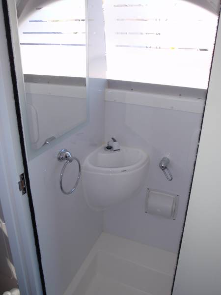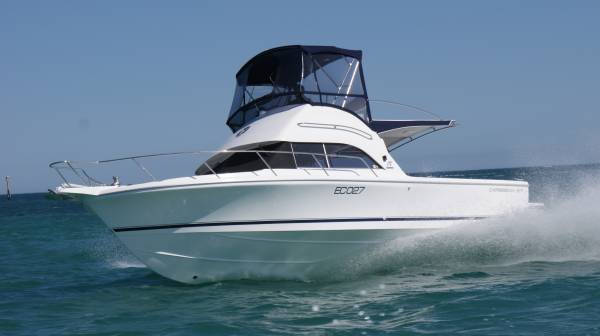 Caribbean 27 CRUISER DELUXE. You will not find a more practical boat than this "BLUE CHIP LEGEND". We have created the perfect family weekender, by customizing the perfectly proportioned and performing Caribbean 27 FBSF. Capitalising on the much loved open bulkhead design by adding a FULL HEIGHT toilet shower module with electric toilet. With holding tank, hand basin, hot water system, Digital TV with DVD, whilst deleting the lower driving station. We have created the perfect boat for extended trips away.