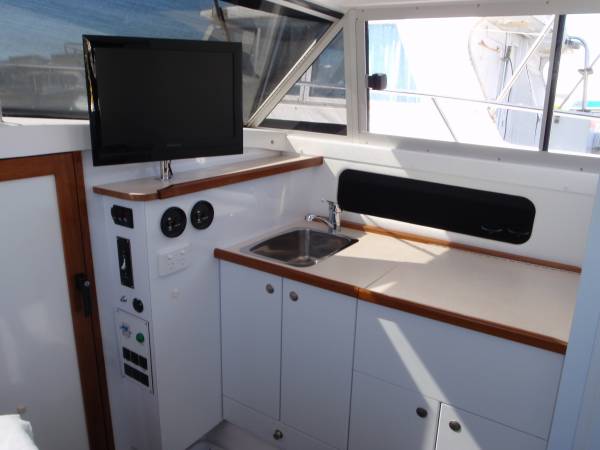 The twin 220HP MPI V6 Mercruisers and Alpha drives will get you where you want to go fast with a top speed of 38 knots +, or cruise economically at 22 knots sipping just 50 ltrs per hour.