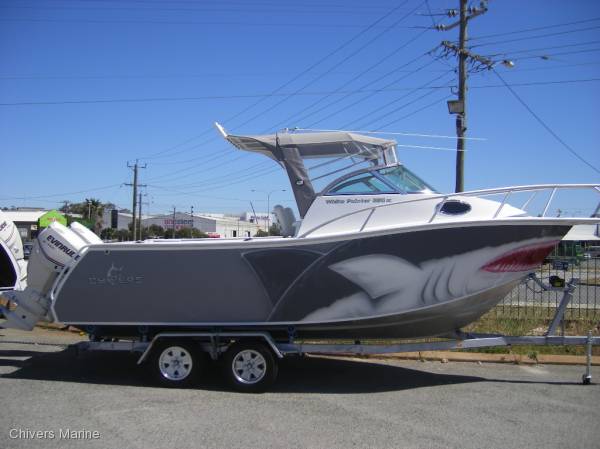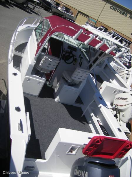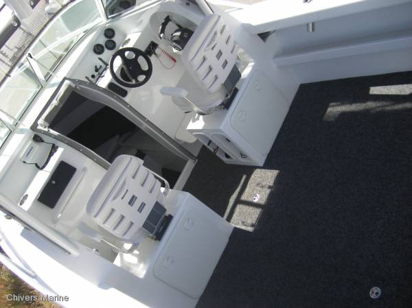 The new Chivers Shark Series White Pointer 220 gives you a choice of three models, the Sports Cabin, the Sports Fisher and Walkaround. The new longitudinal girder hull design, sharp 22 deadrise, large reverse chine and a floodable keel ballast results in a superior ride and performance that enables you to Attack the water with confidence and saftey.