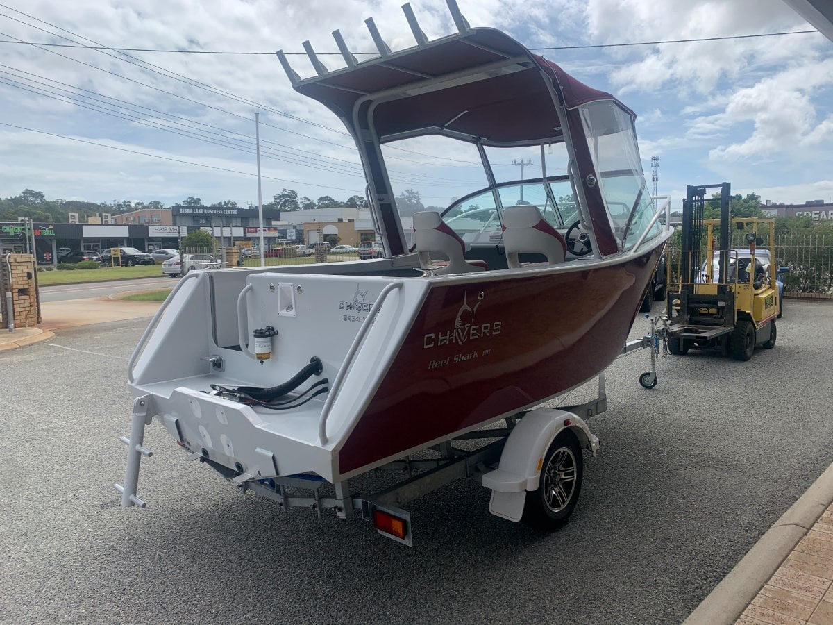 The Chivers Marine Reef Shark is a 5.5 LOA plate beast, custom built locally in Bibra Lake the Reef Shark is one of the most popular small fishing boats. Offering enough deck space and storage for some of the longer fishing and crayfishing trips whilst being compact enough to easily handle by yourself.