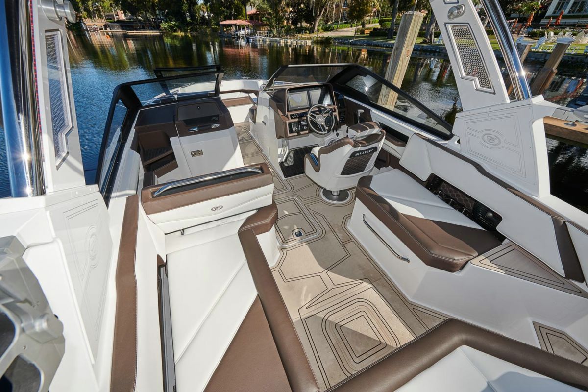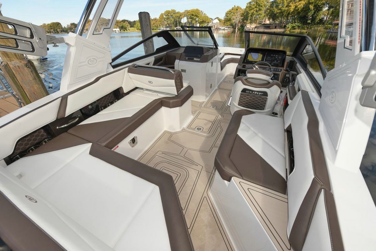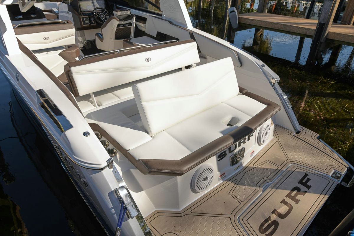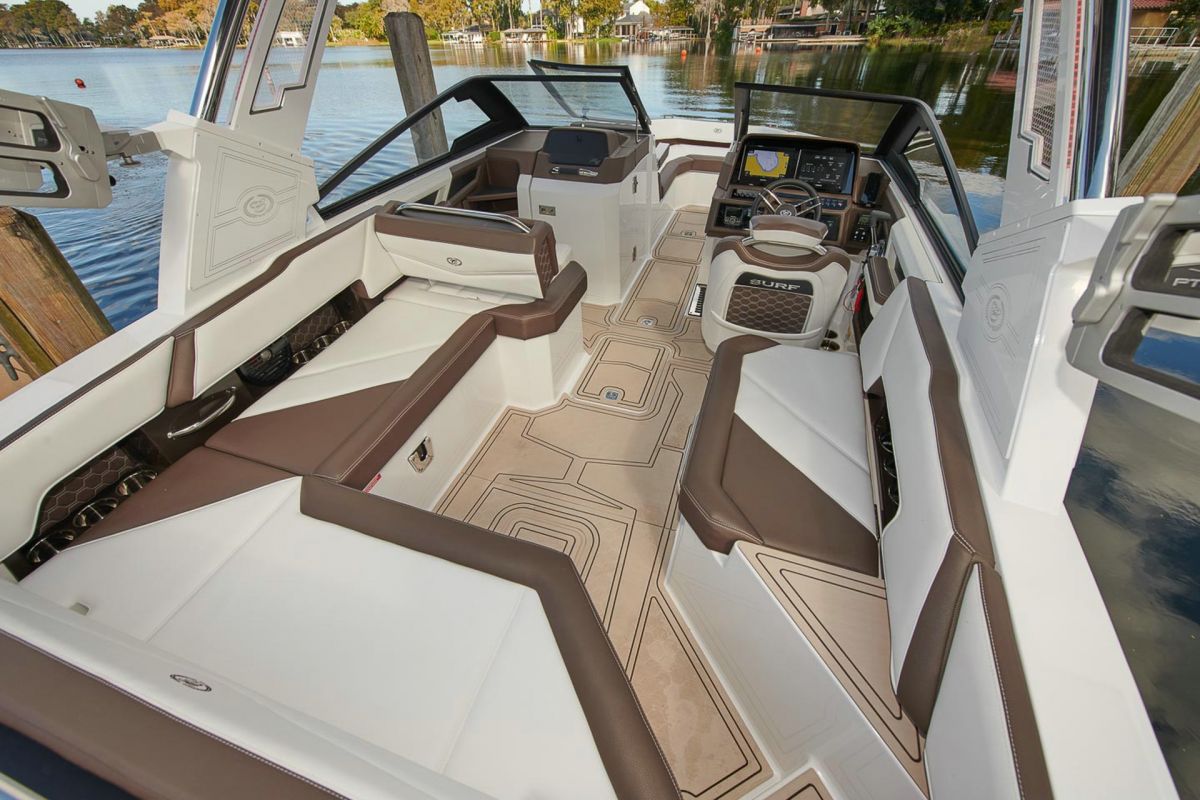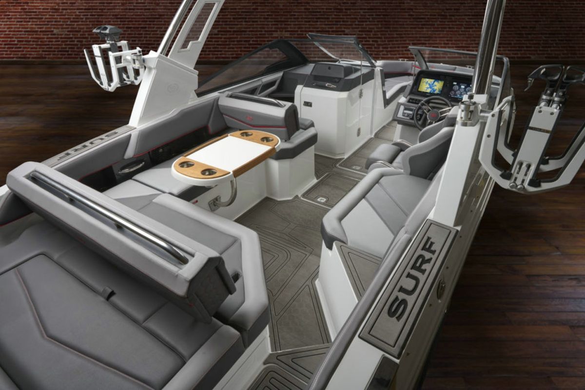 With updated styling and an expansive interior that features wraparound yacht-style seating, the R6 Surf capitalizes on increased space, storage for watersports gear, and capacity for a head compartment while maintaining its sporty performance and responsive handling.