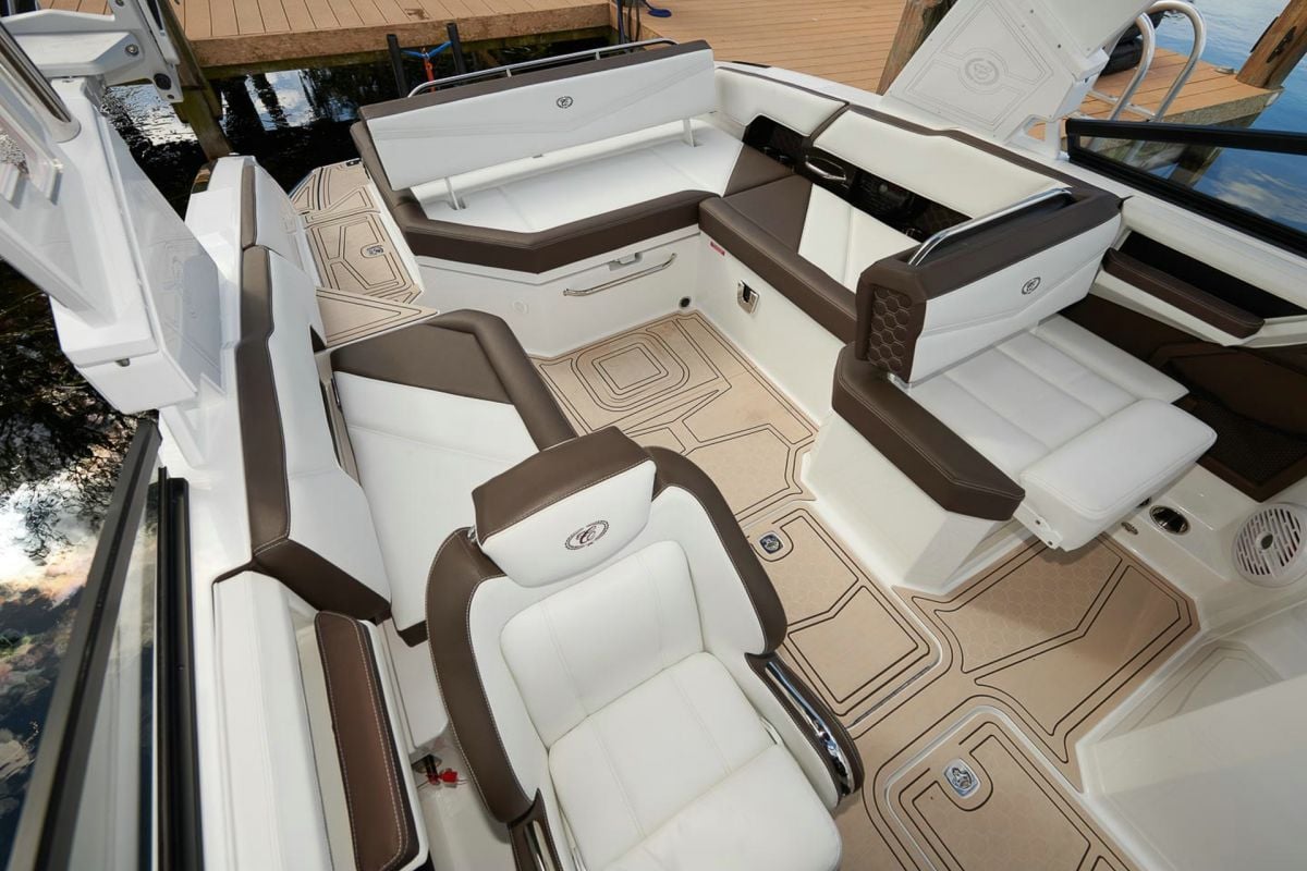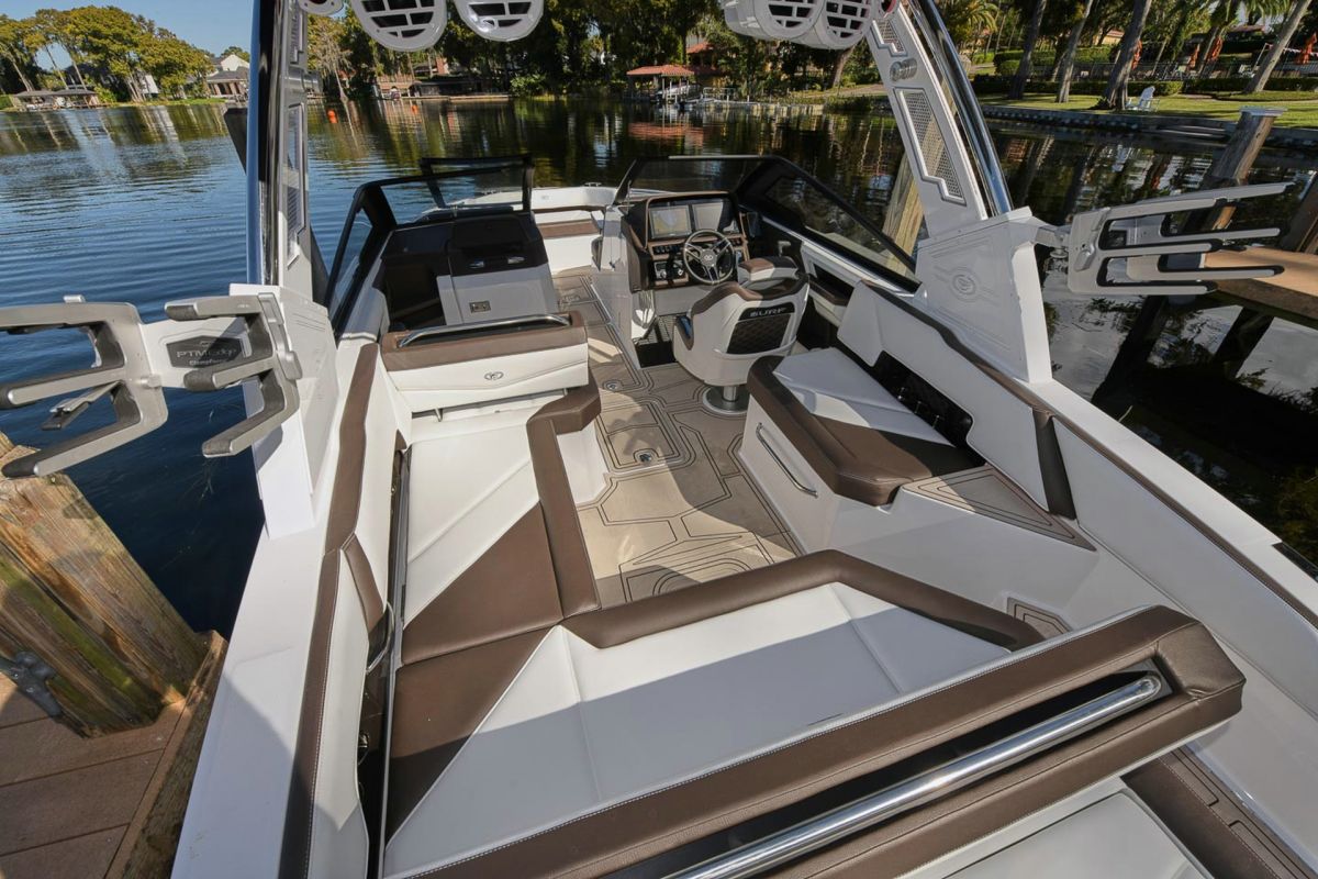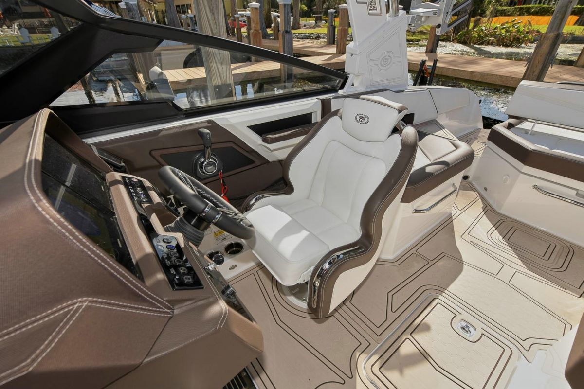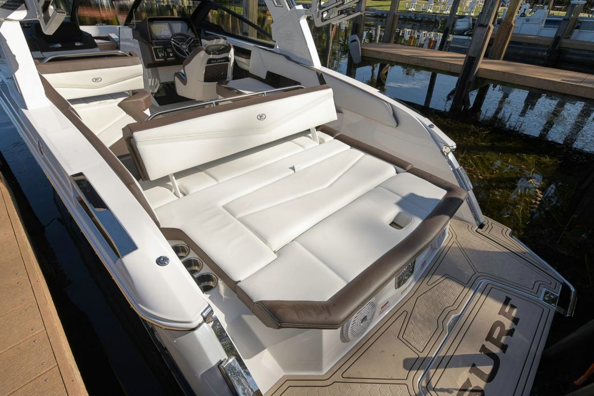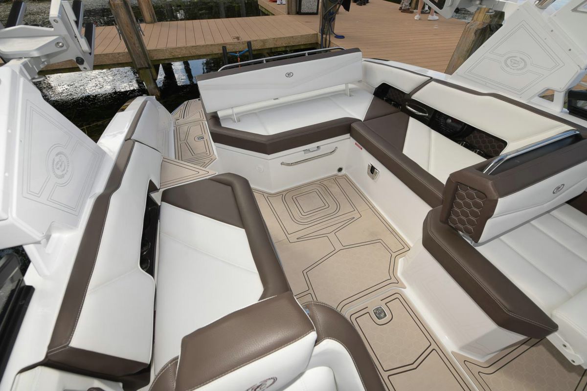 With updated styling and an expansive interior that features wraparound yacht-style seating, the R6 Surf capitalizes on increased space, storage for watersports gear, and capacity for a head compartment while maintaining its sporty performance and responsive handling.