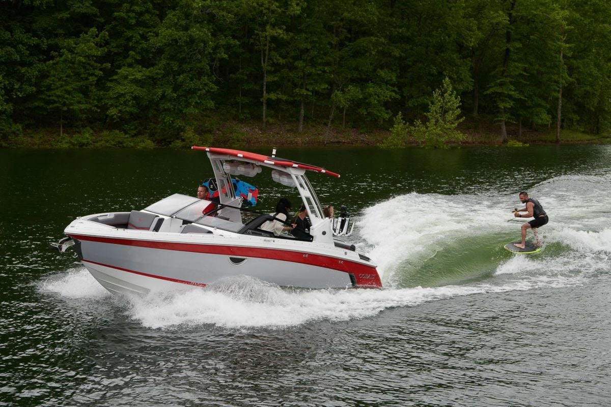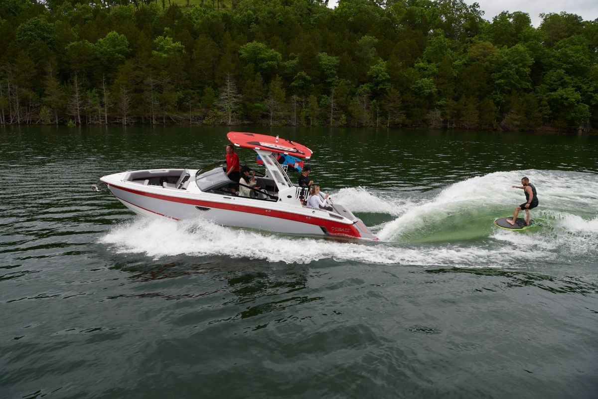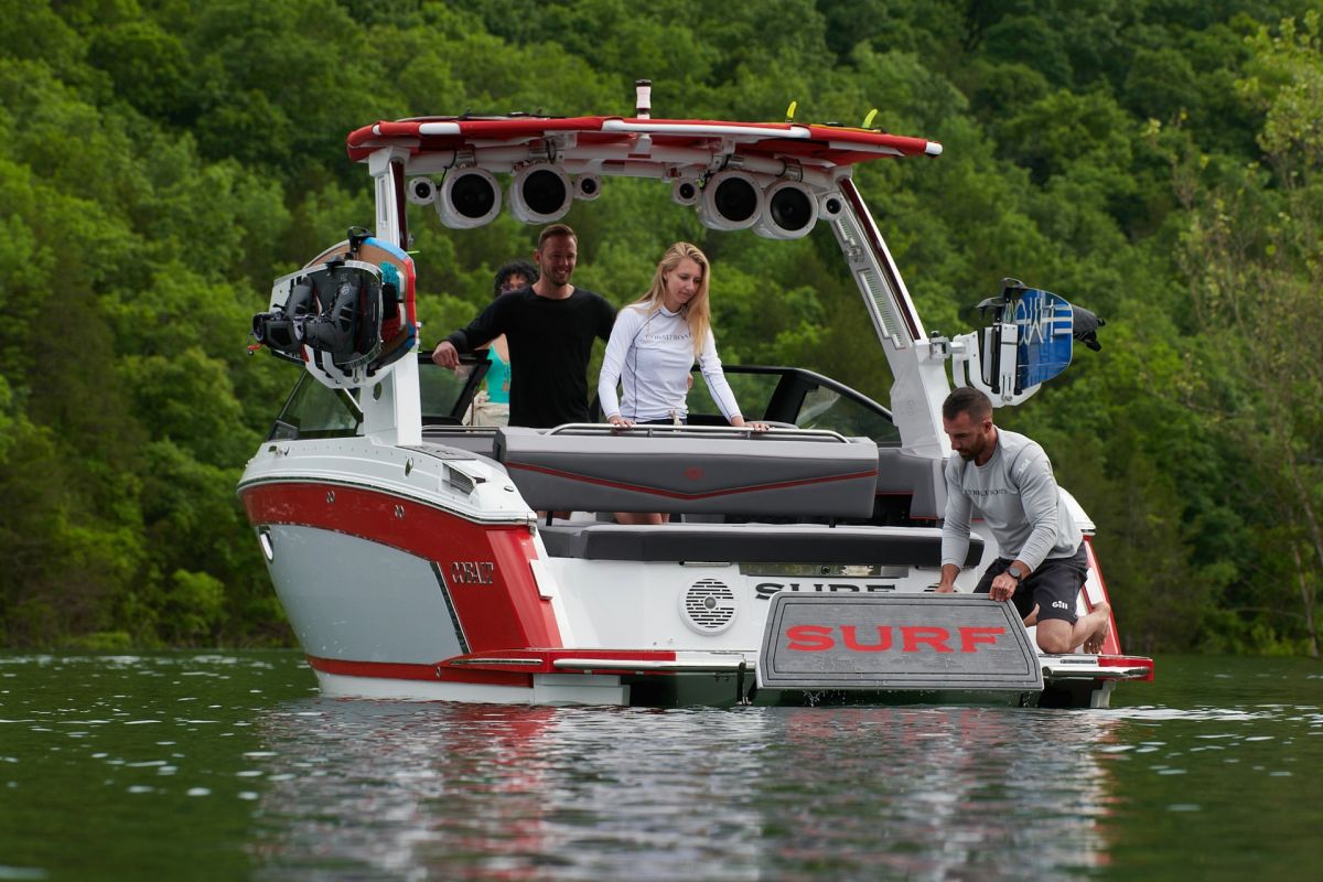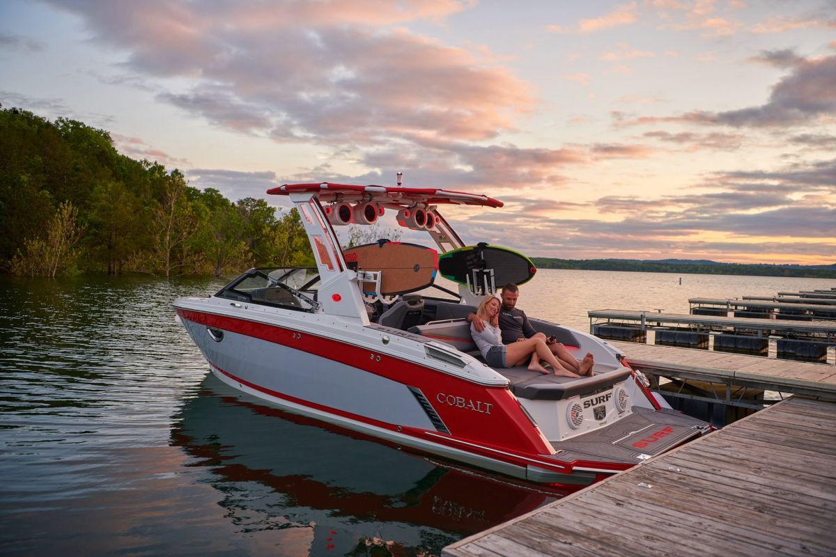 Cobalt's Surf Series seamlessly integrates Surf Gate(TM) with a custom-designed surf hull, all powered by Volvo Penta. Nearly all boats in the series employ traditional hard ballast tanks for wave customization. The R33 Surf adopts a streamlined design without ballast tanks. This tailored approach ensures agility and simplicity, redefining expectations for surfing enthusiasts across the entire Surf Series.