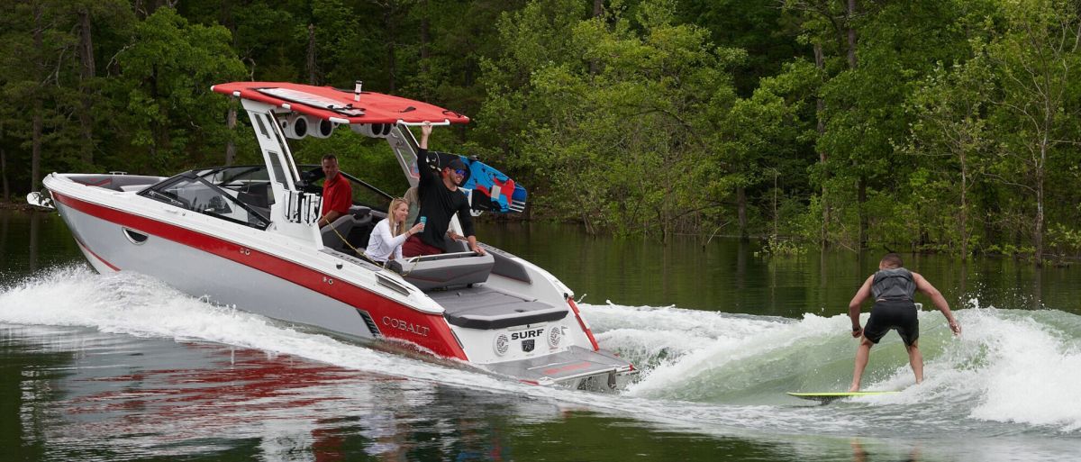 Powerful and smooth, the R6 features Cobalt's Custom Wave Technology surf system with multiple hard ballast links, the Volvo FWD powertrain, and a specifically designed surf hull that integrates with our best-in-class Surf Gate(TM) technology to shape the perfect wave for a day of excitement on the water.