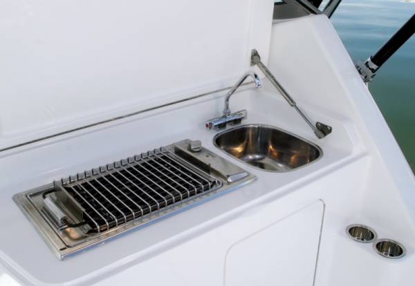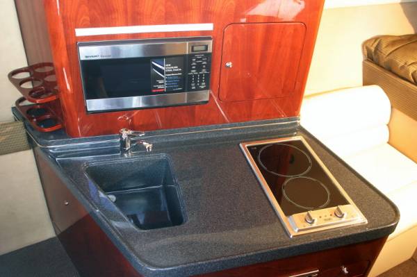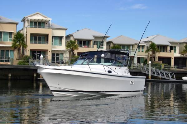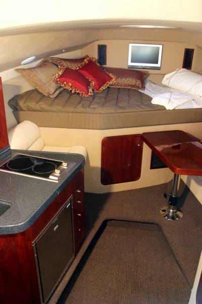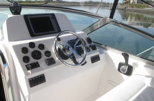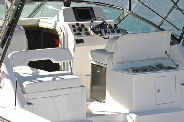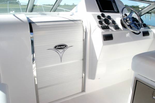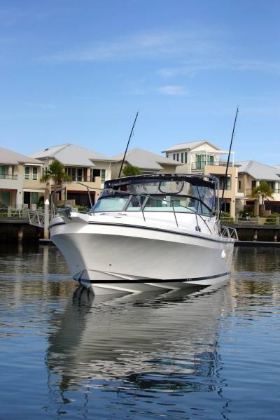 The Deep V 310 SE Express Cruiser is the latest release for 2006 at Deep V Sales and provides the perfect day trips to turn into weeks away. Designed with a spacious cabin layout which features two double berths (one featuring a privacy curtain), full size shower / toilet, large galley and separate dinette for three. The cabin’s internal area downstairs features headroom of at least 1.90 metres with enough room for a family of four to keep out of the elements or to sit back and enjoy an evening watching the optional TV/DVD.