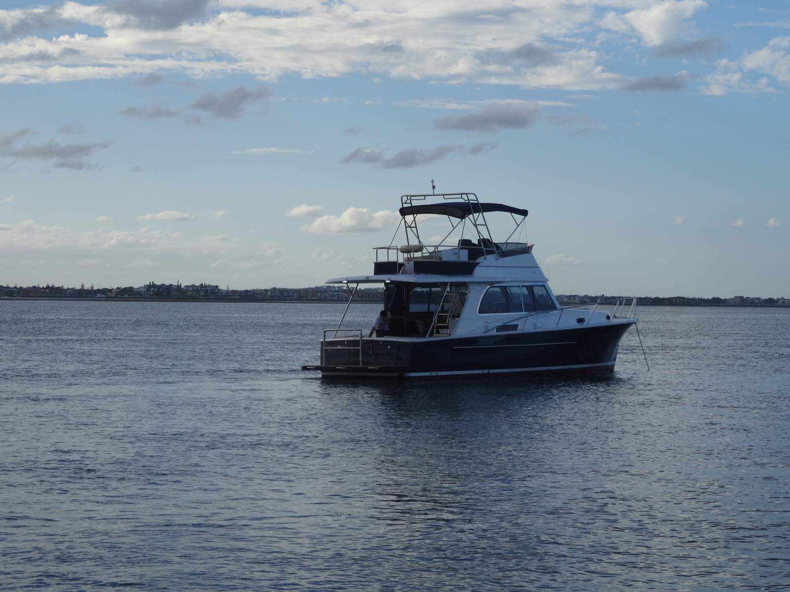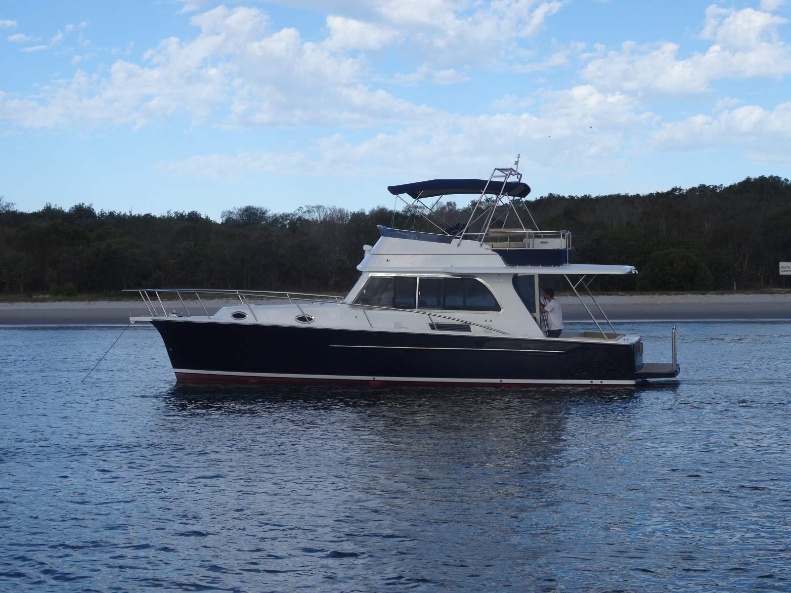 twin helm seats, and a flybridge, which are valuable for experienced and novice boaters alike.