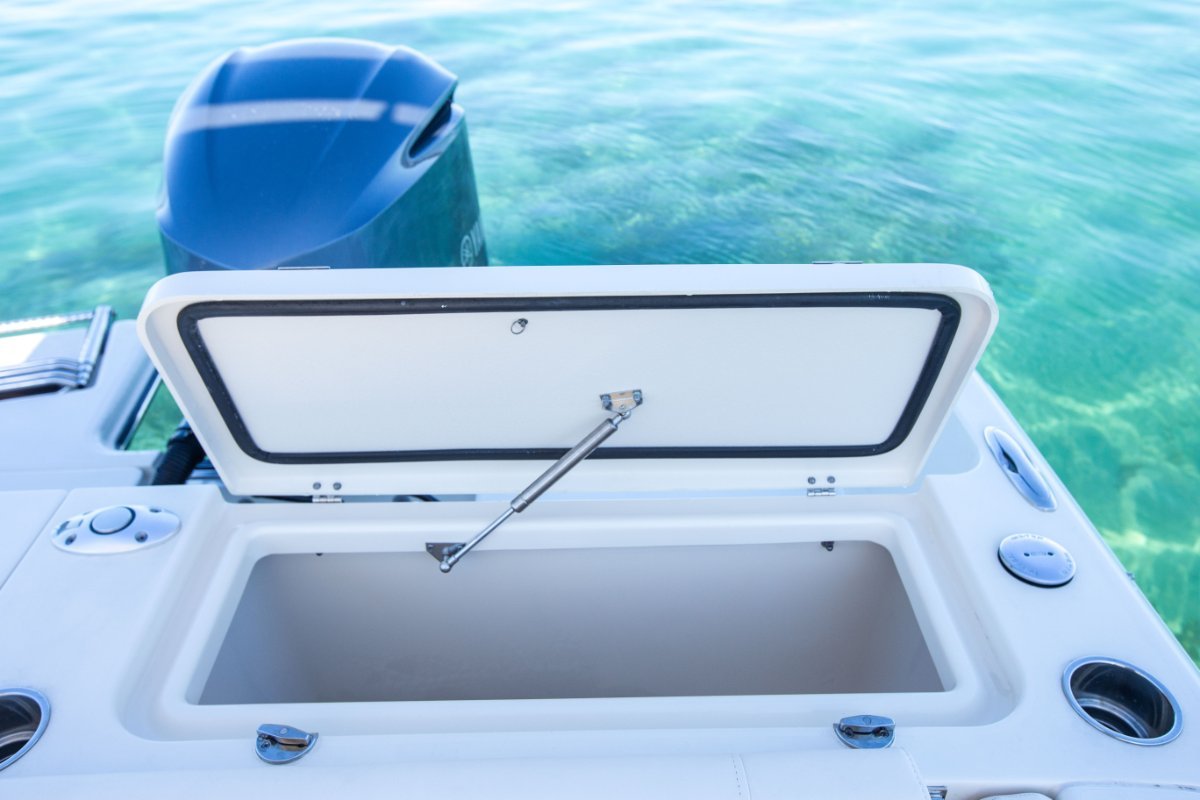 - Wet bar w/sink, drink holders (2) & 35-qt. (33 l) removable Yeti® cooler (under) (not available w/cockpit step option)