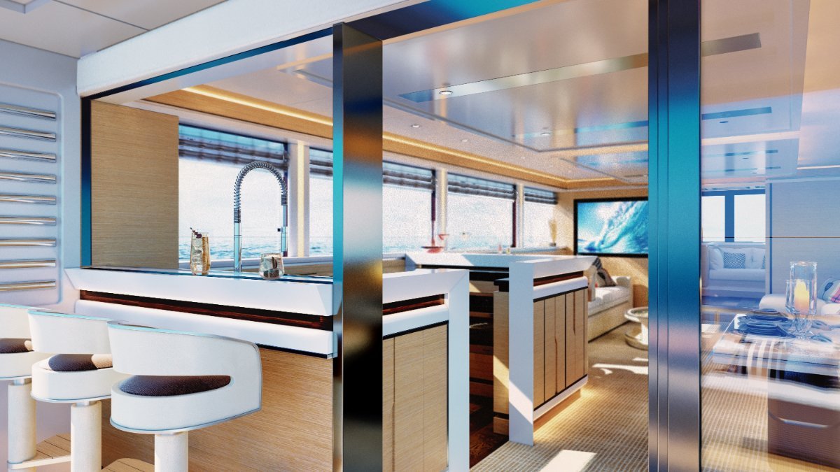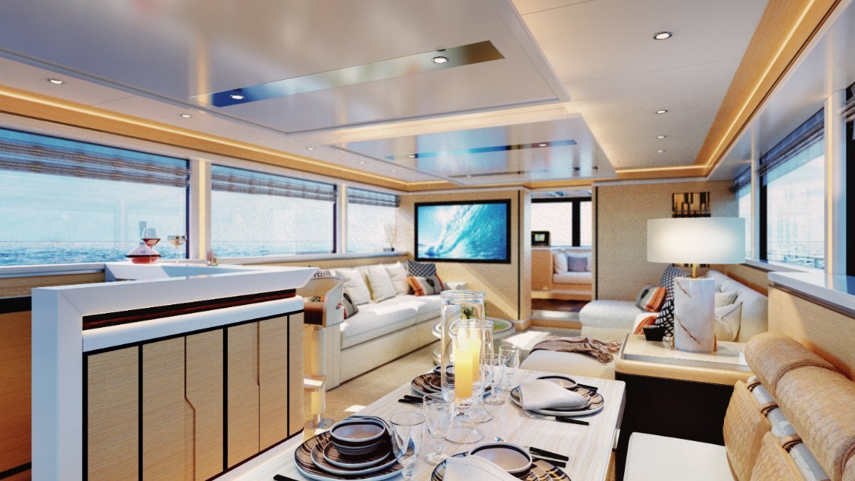 The customisable saloon level boasts a wonderful balance of luxury and practicality with a raised galley and complete helm station complementing the generous lounge offering uninterrupted views from all angles. Further customisation is available in the lower accommodation level with a choice of 4 cabins or 3 cabins with a separate lounge / theater room.