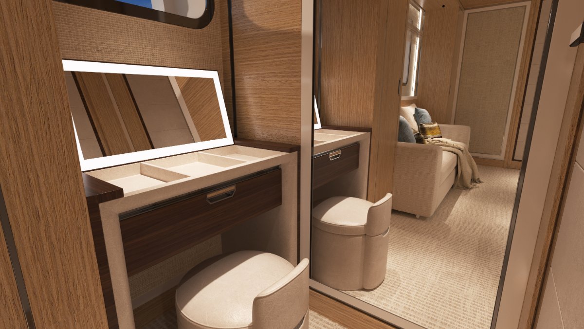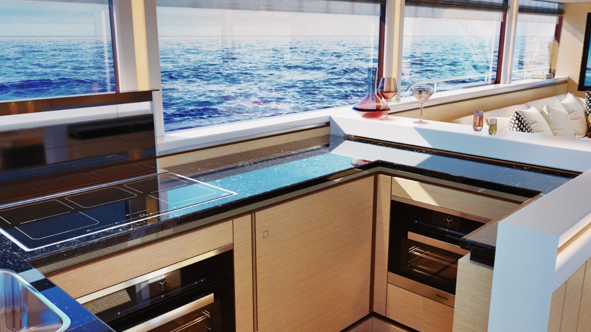 The customisable saloon level boasts a wonderful balance of luxury and practicality with a raised galley and complete helm station complementing the generous lounge offering uninterrupted views from all angles. Further customisation is available in the lower accommodation level with a choice of 4 cabins or 3 cabins with a separate lounge / theater room.