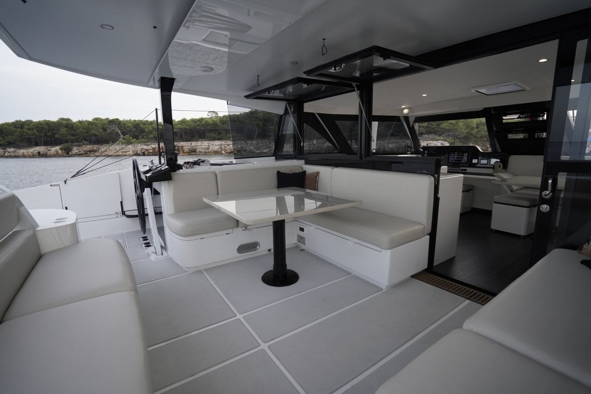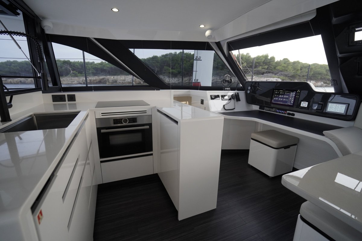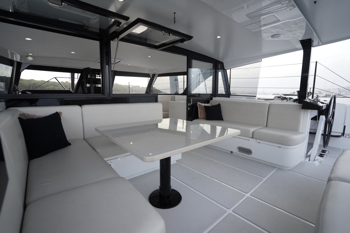 The SC already comes standard with eco-drive hybrid diesel / electric motors, lithium batteries, 4.1 kw of Solar, carbon fibre mast / longerong beam / daggerboards, and twin Jefa rotating wheel pedestals as to name a few inclusions, but this boat is fully spiced and loaded with optional extras, which you may choose to alter, but currently includes: