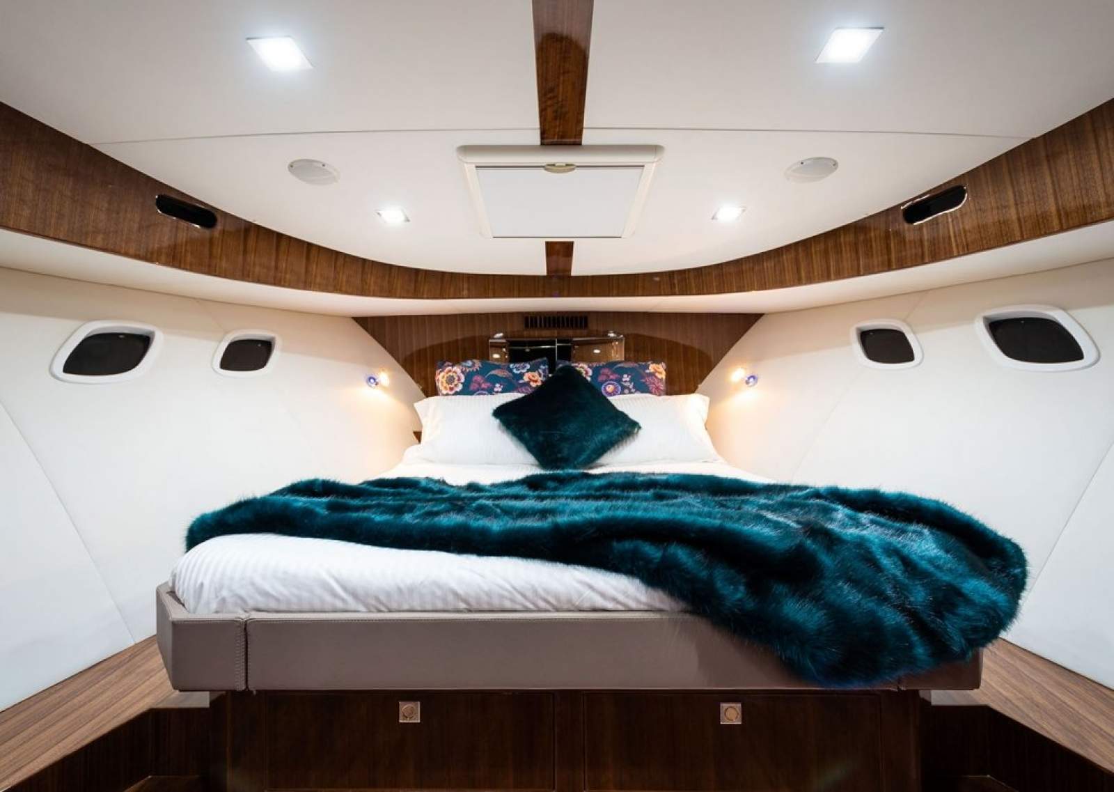 Configurations vary, but often include additional staterooms with twin berths for guests.