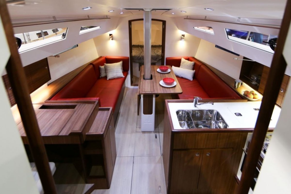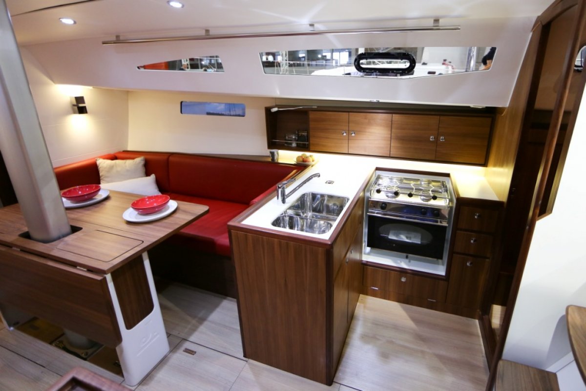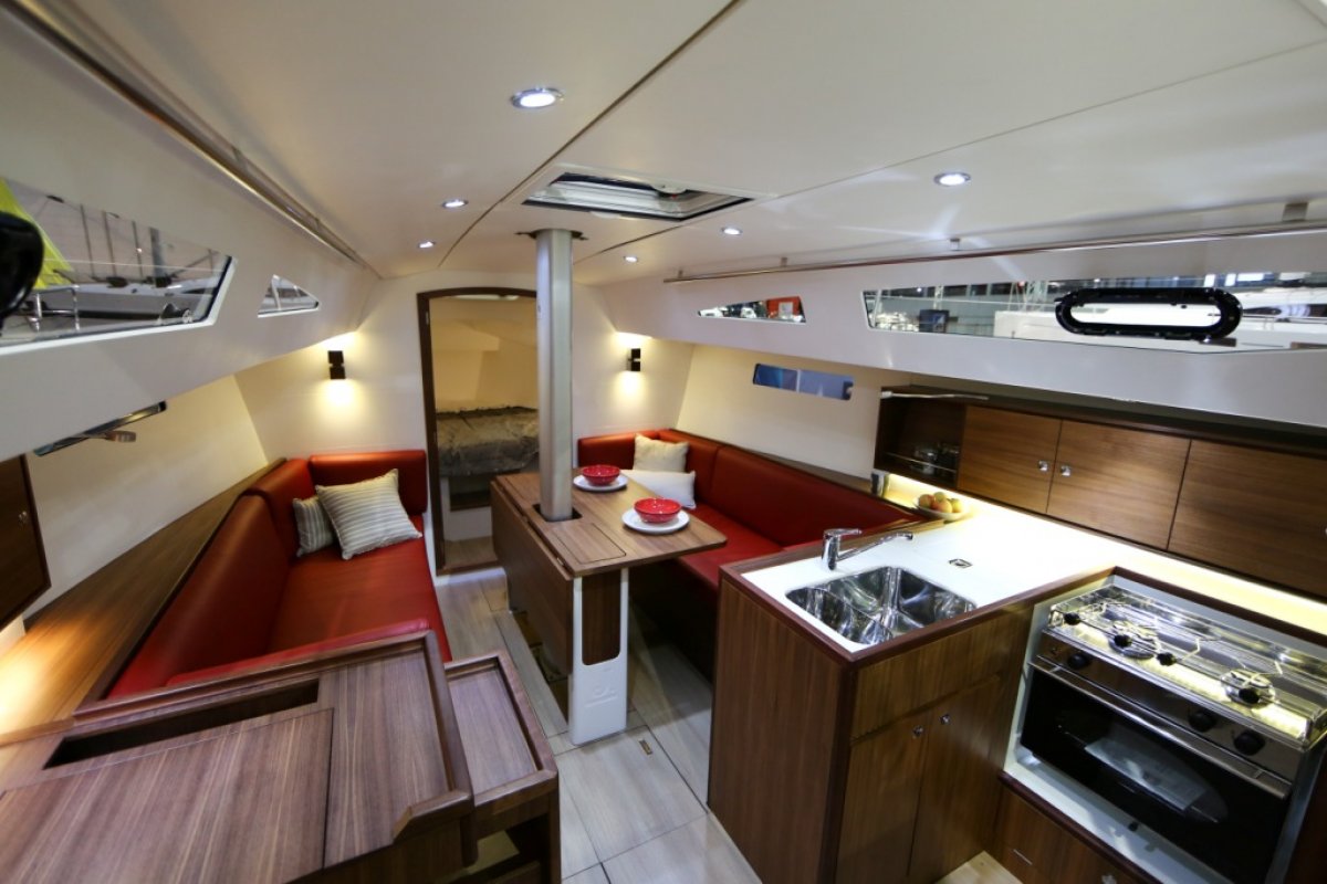 Comfortable settee berths to port and starboard in main saloon. Centre drop leaf table with bottle storage compartment.