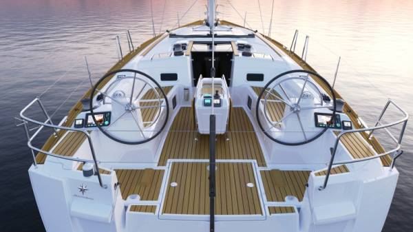 Twin helm steering moved far aft, keeps the cockpit clear and gives