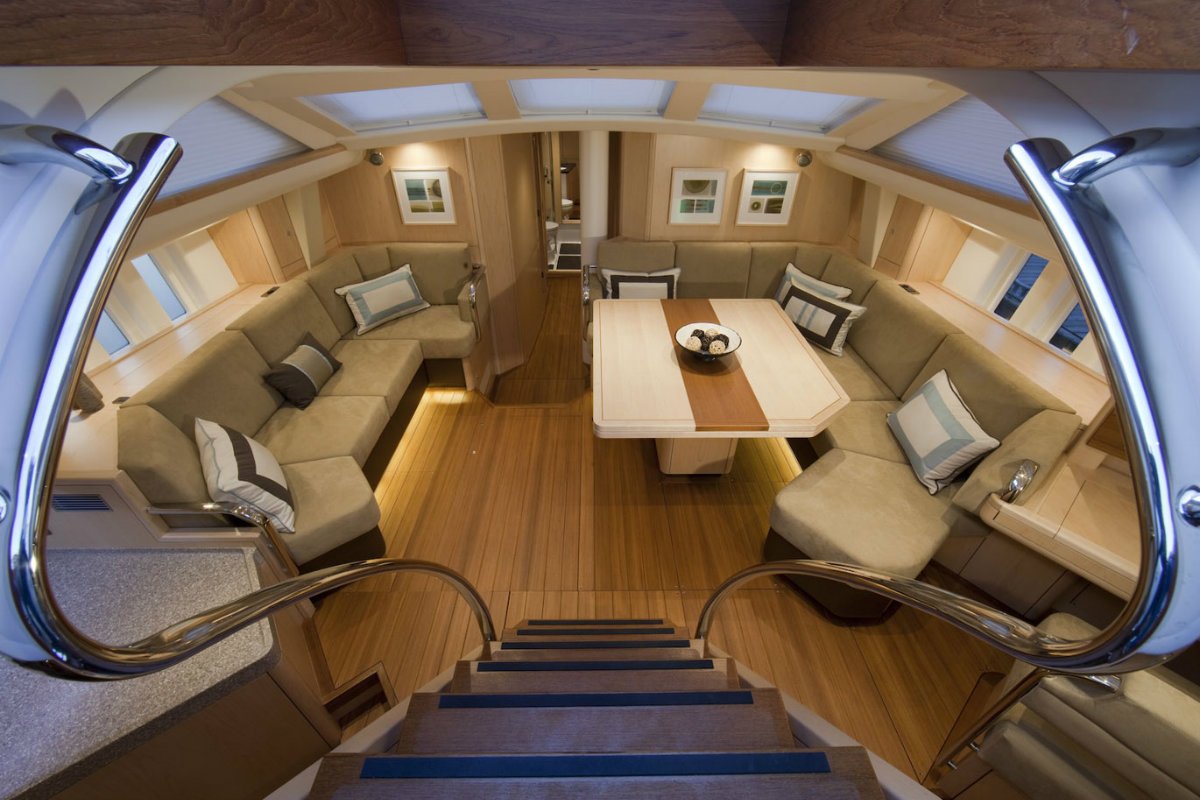 deck uncluttered giving a 2m by 2.2m leisure area. The cleaner, more modern bulwark profile, with its integral stanchions and mooring cleats, creates spacious, uncluttered side decks, whilst the smoother, flush lines of her foredeck produces more deck space than the Oyster 62. There is also the option of three large vertical portlights in the hull, to port and starboard, to further enhance the views out from the saloon giving this new Oyster real superyacht quality.