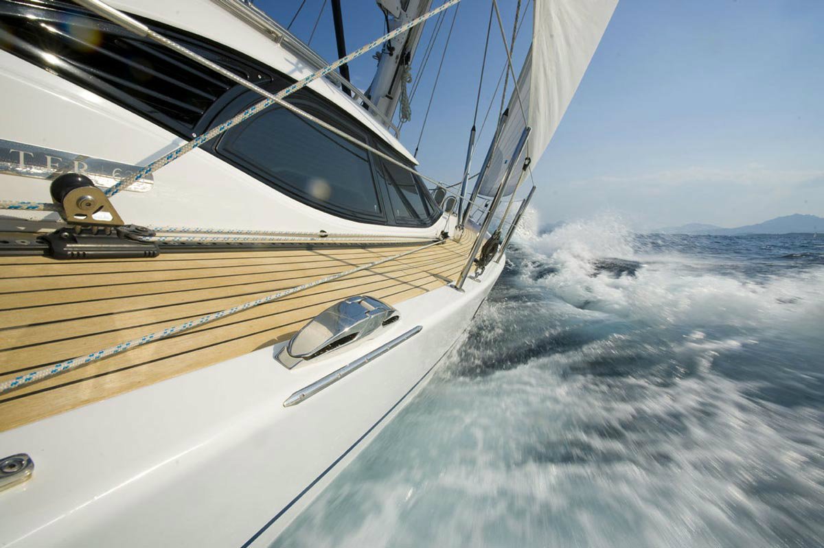 Fully battened mainsail (with sail numbers), furling genoa and mainsail cover