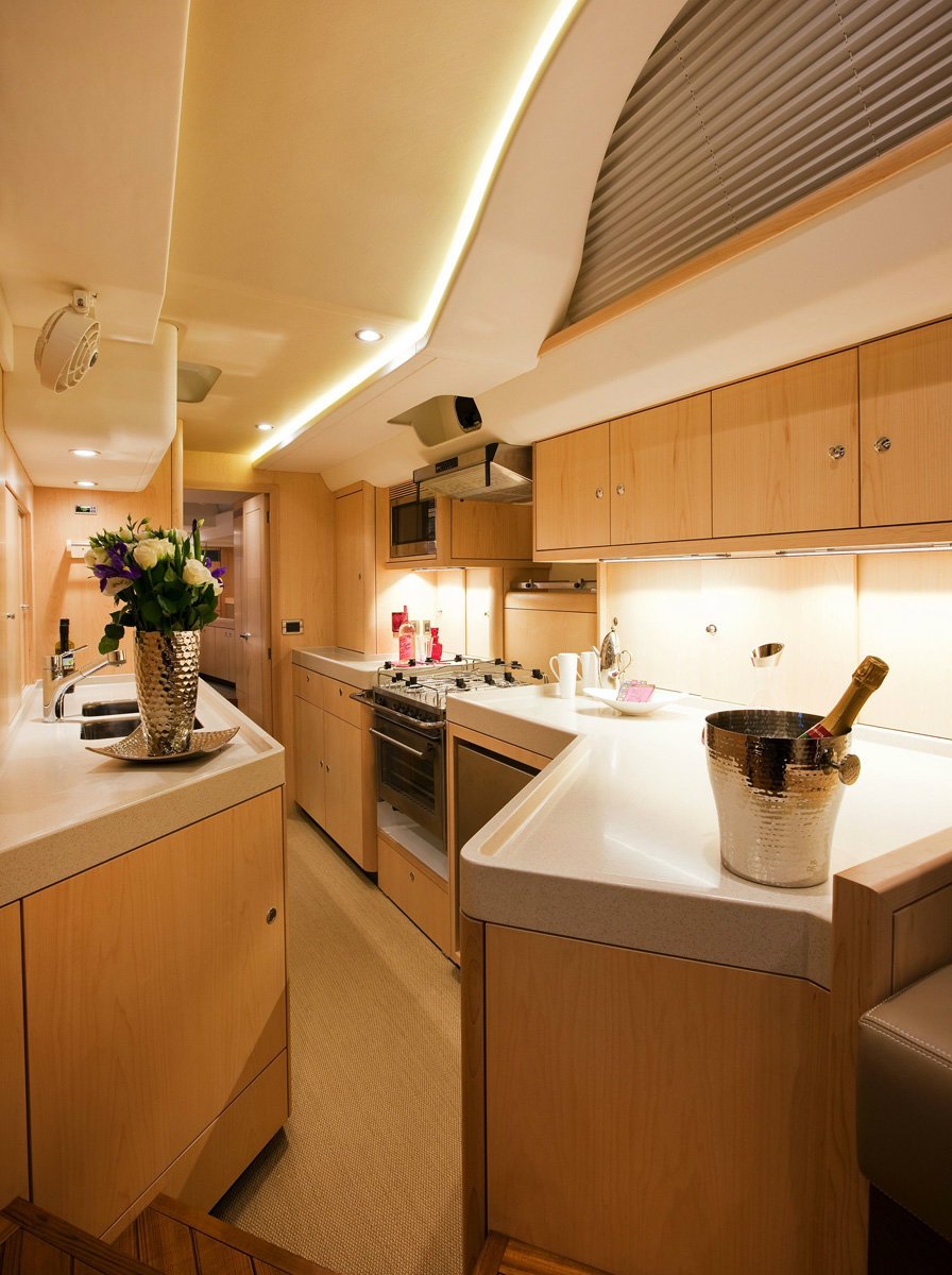 There is an option of a sliding companionway access from the master cabin to the aft deck or owners may prefer to keep the aft