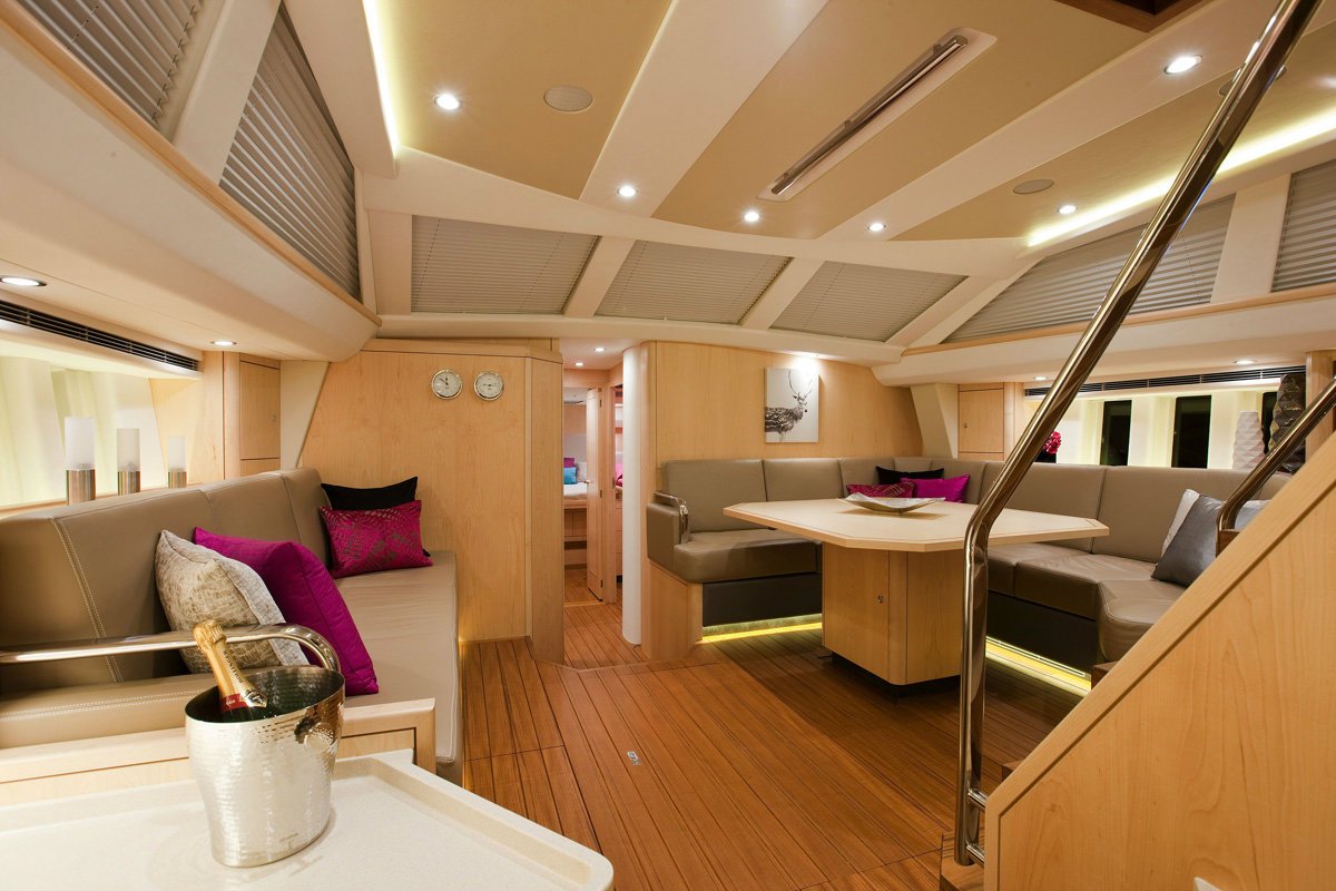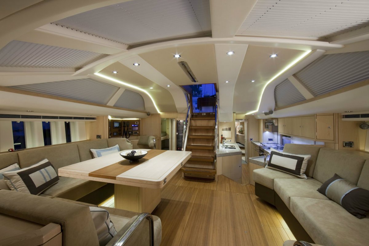 Designed for comfortable live-aboard family and friends sailing, the 625 interior options also allow for a forepeak layout to be set out for a full-time crew member. The main areas in the yacht feature two forward cabins, each with its own heads and shower, a spacious owners suite and a fourth cabin that can be configured as a workshop, guest cabin or a children's cabin with access from the master cabin.