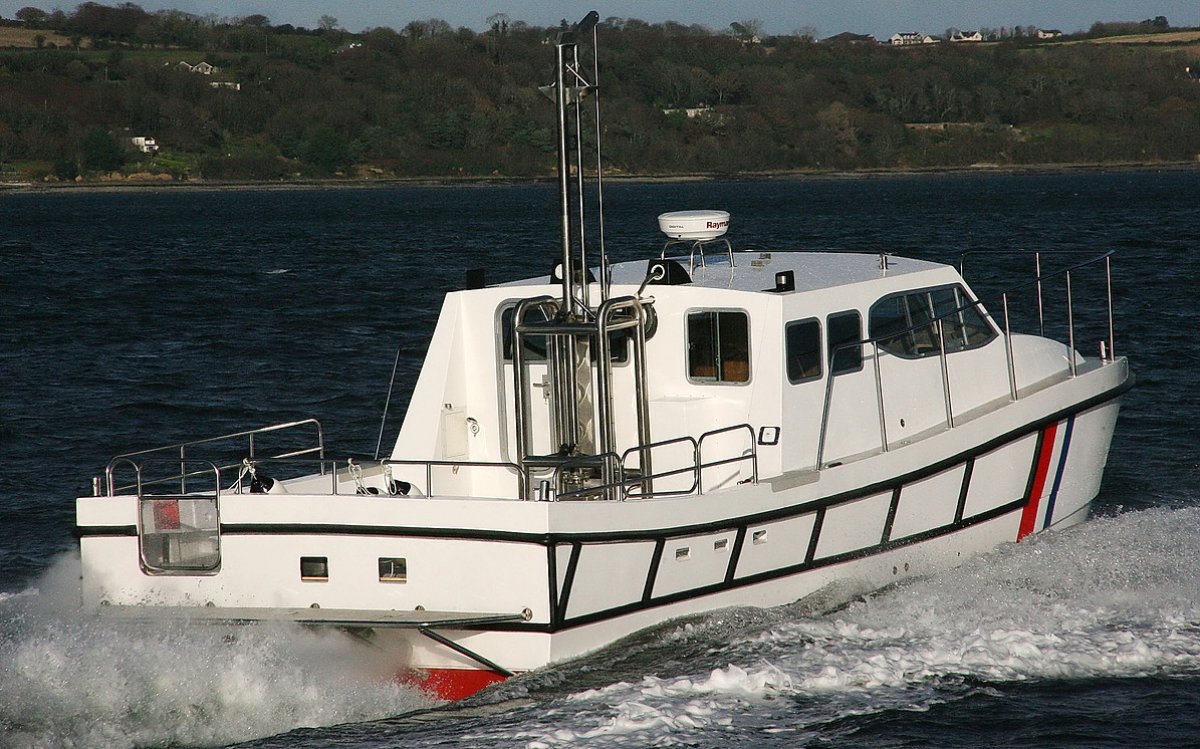 The WILDCAT 40 11.7m, high buoyancy, symmetrical hull catamaran, designed to offer a large stable work platform in an attractive, graceful design, combining style and good looks with practical functionality, a rare combination today. With a length overall of 12m / 40ft and a beam of 15ft the vessels hulls have been designed to provide high buoyancy in the fwd sections to prevent slamming on the bridge deck, which itself is raised as high as practical above the WL The hulls are designed to develop a spray cushion, softening the ride at speed. Full length keels are incorporated, and provide protection to the propellers, as well as increasing the hulls grip on the water for slow drift speeds. The vessels beam has been constrained to a wide 15ft 5" providing a good compromise between work area, stability, and minimal slamming that tends occurs on catamarans that have a very wide bridge deck. Also marina space and berthing facilities are considered, where excessive beam can be hard to facilitate. The superstructure design is full with maximizing internal accommodation area, yet providing a large and spacious flush aft deck, with the engines accessed from large opening flush hatches, providing excellent accessibility to the engines for service. The catamaran design has of course very high levels of survivability with 8 individual watertight compartments
