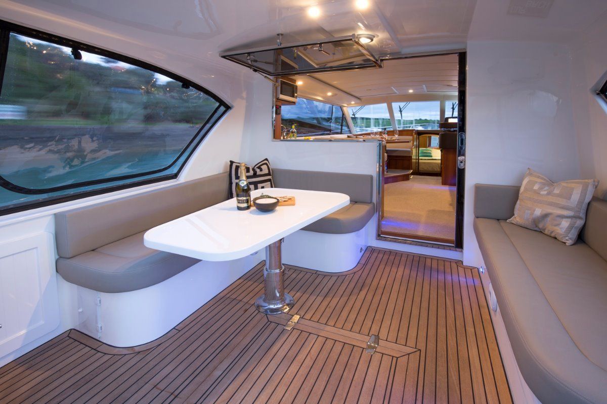 Salthouse finish is evident throughout. Entertaining flows easily from inside to out. This superb design includes an al fresco dining area and boarding platform with live bait tanks. Relax in the luxurious saloon, fish from the spacious cockpit.
