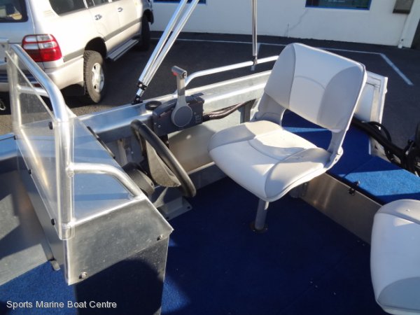 A FISHERMANS DREAM BOAT WITH STORAGE EVERYWHERE, MASSES OF ROOM, FRONT CASTING DECK, UNDERFLOOR FUEL TANK/FILTRATION SYSTEM, REMOVABLE SEATING OPTIONS, LIVE BAIT TANK, SIDE RAILS, BILGE PUMP, NAV LIGHTS AND LARGE SHADY BIMINI