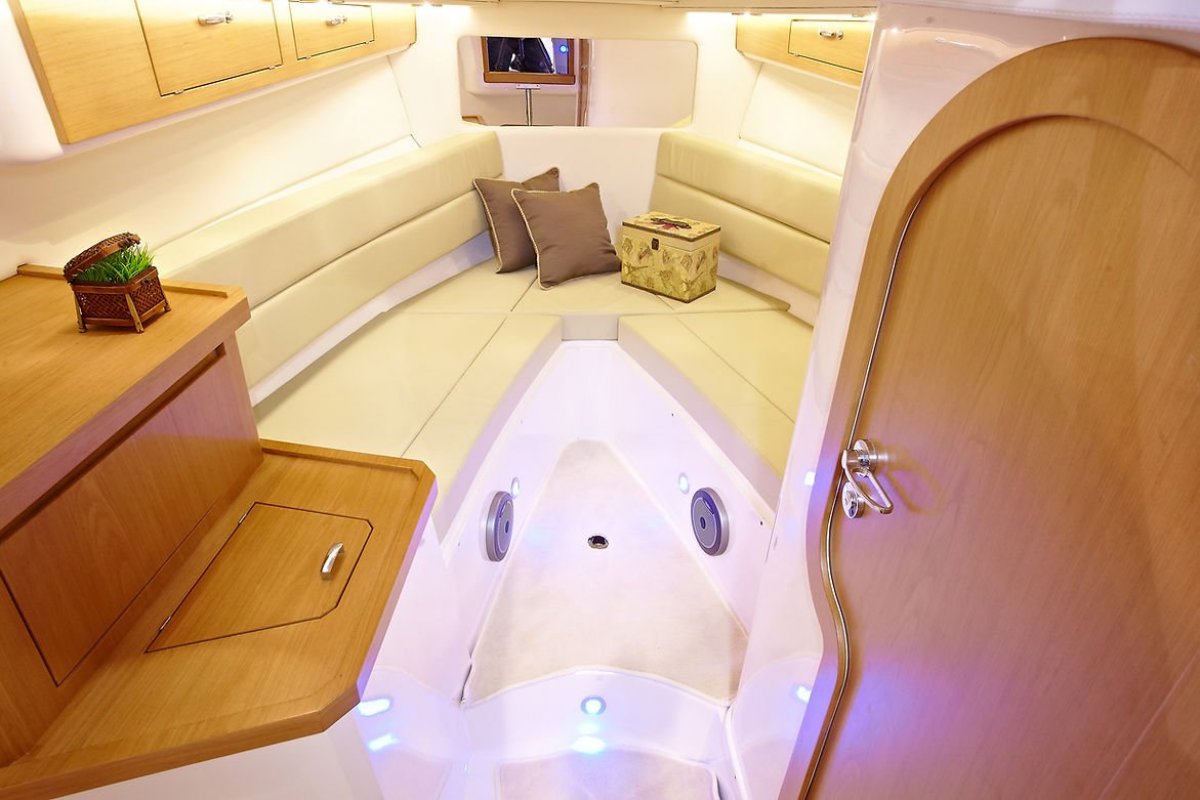The Schaefer 303, is perfect for sports and leisure activities to suit all guests. A peek at the interior and you'll understand why critics applaud this model. Each detail of this yacht has been organised and planned out intelligently so you can take advantage of the amenities it offers while being away from home. The maximum speed of the Schaefer 303 is 33.9 knots and with a 350-litre fuel capacity, you'll be happy to know that you only consume 70 litres per hour when you're cruising.