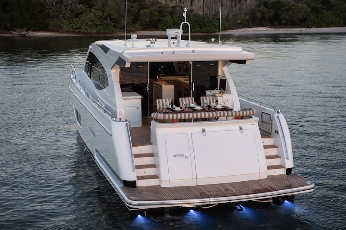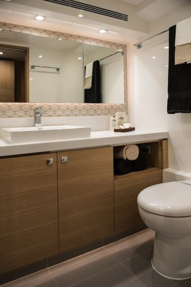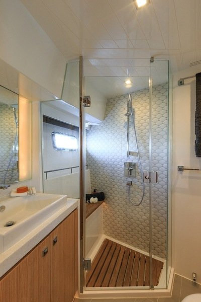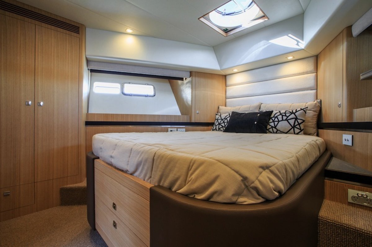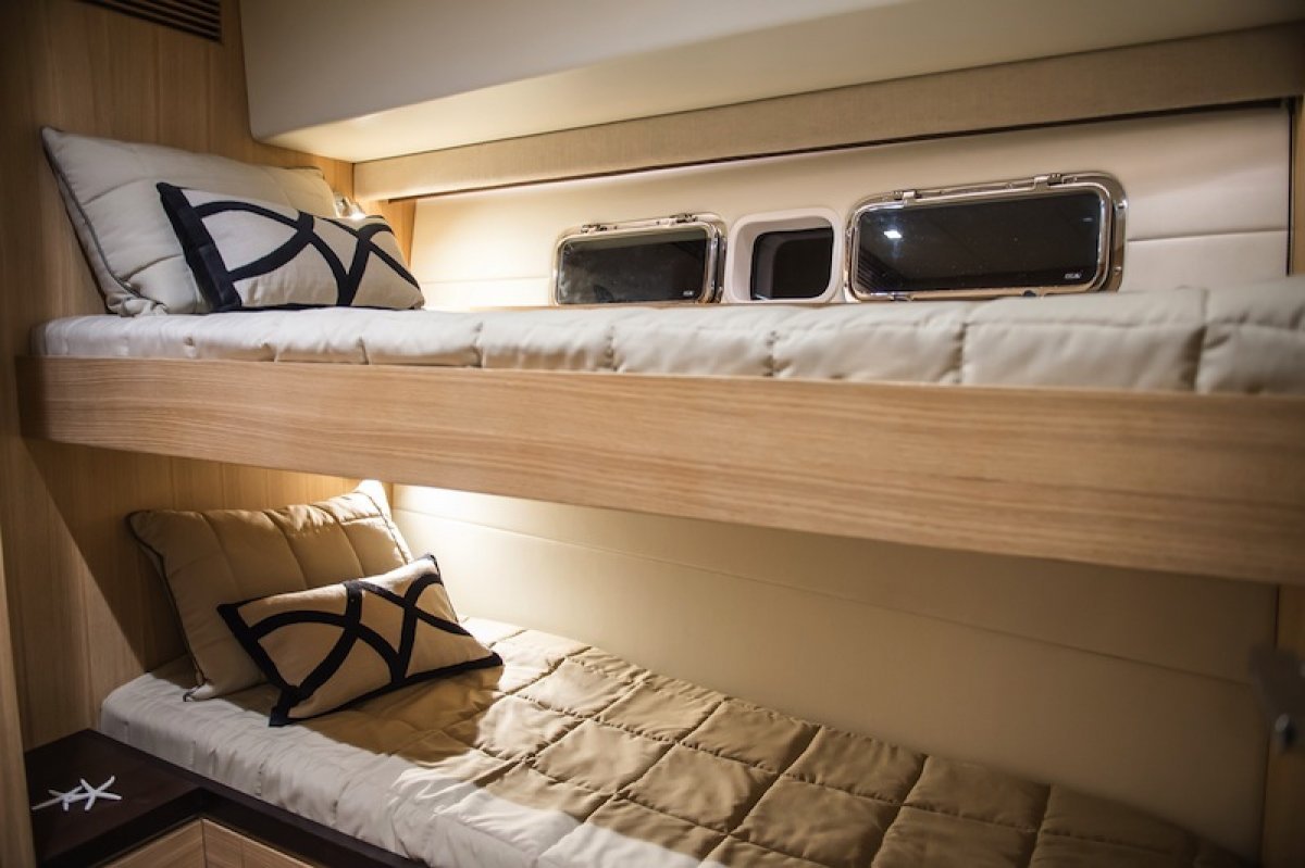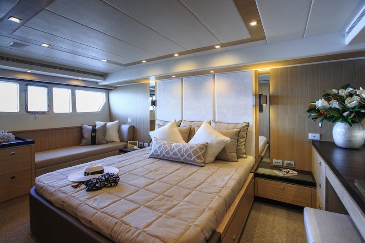 Full width Master Stateroom, Forward VIP Stateroom and Guest Cabin with Hi-Lo bunks.