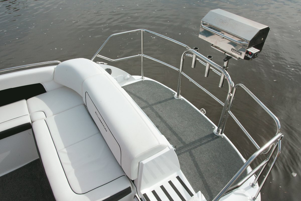*Exterior options - Fibreglass Targa Bar, Bow Ladder, Electric Anchor Winch, Marlin Board Carpet, Spotlight, Rear Railing S/S U Configuration, Deluxe Full Length S/S Rear Railing, Baitboard, Windscreen Wiper System, Boat Catch, S/S BBQ & Mount.