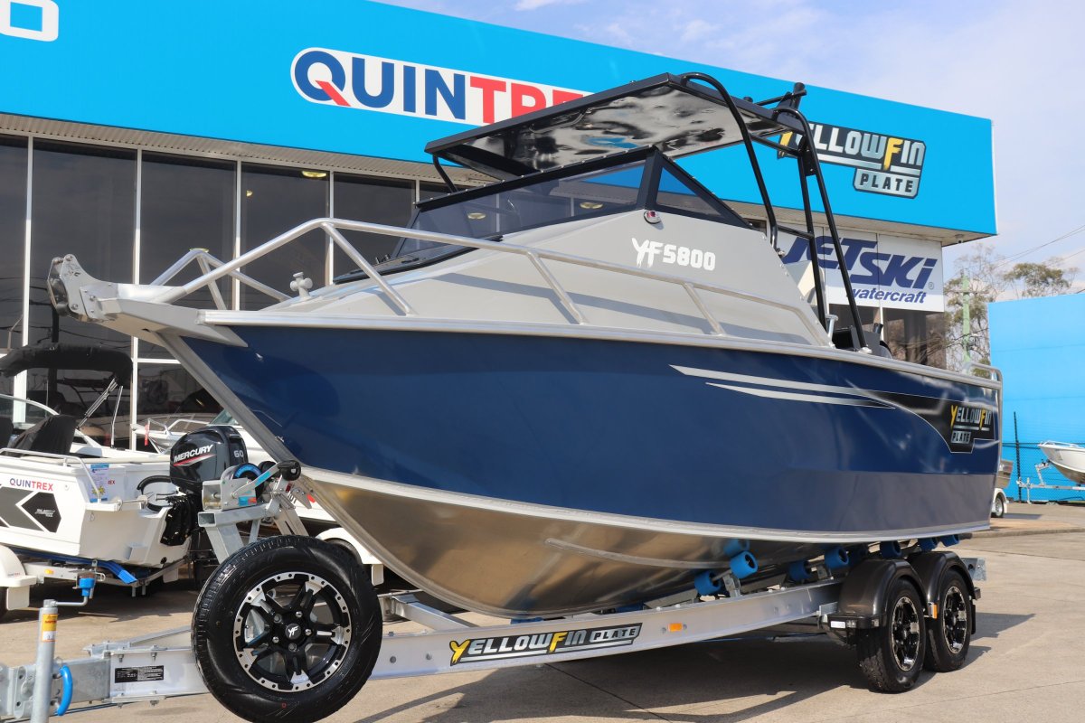 YELLOWFIN 5800 CABIN FOLDING HARD TOP POWERED BY A MERCURY 150HP 4S ON A YELLOWFIN ALLOY TRAILER