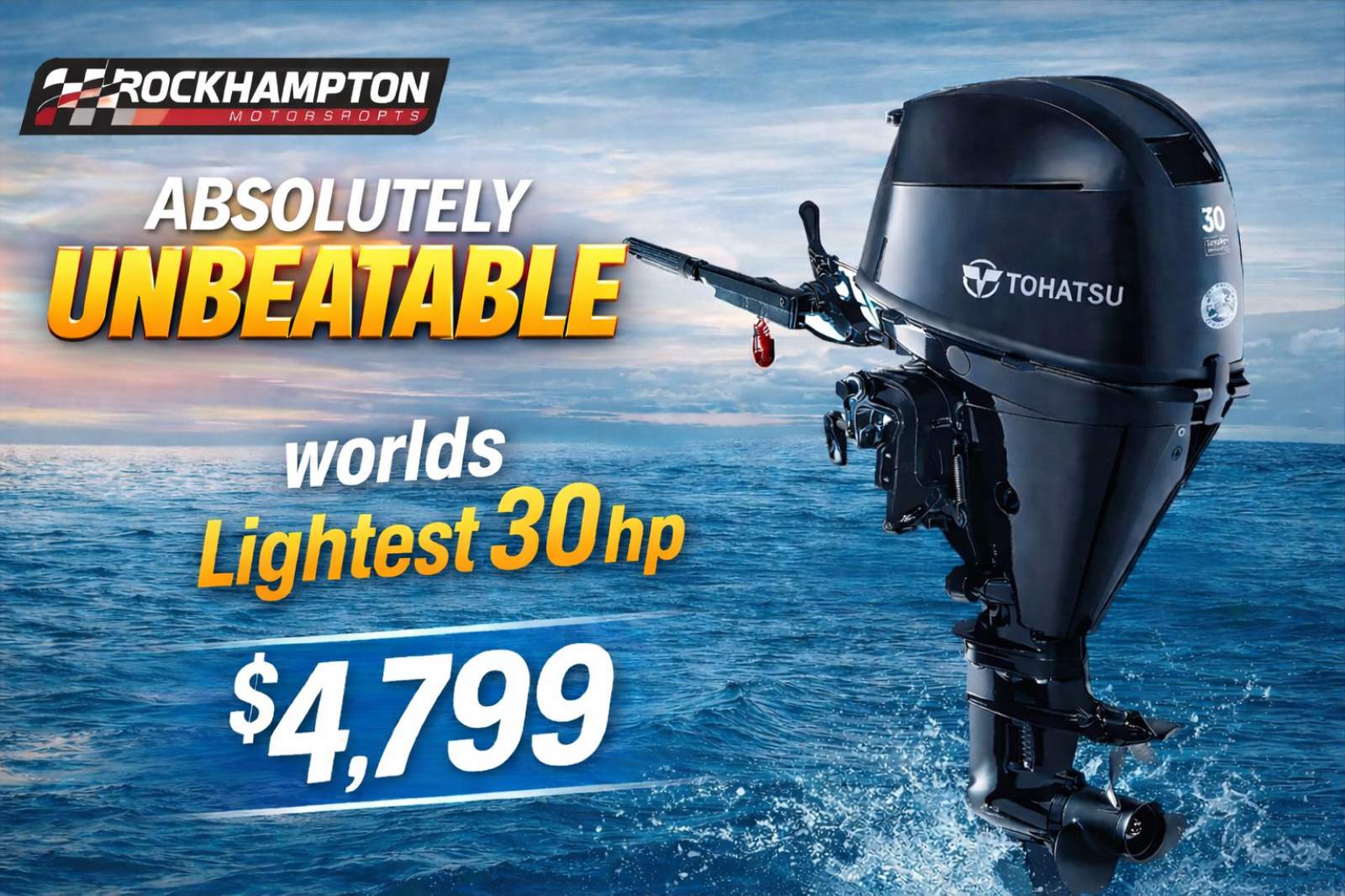 Looking for serious performance, legendary reliability and unbeatable value? The Tohatsu MFS30D-L 30hp Four Stroke Outboard delivers exactly that -- and right now at Rockhampton Motorsports, it's ABSOLUTELY UNBEATABLE.