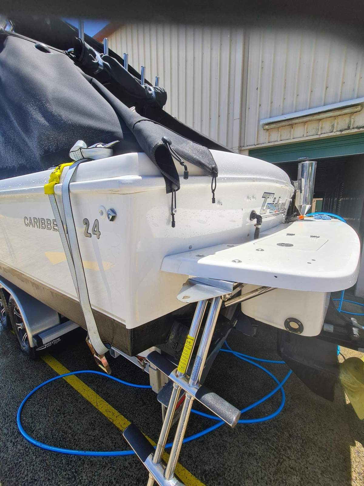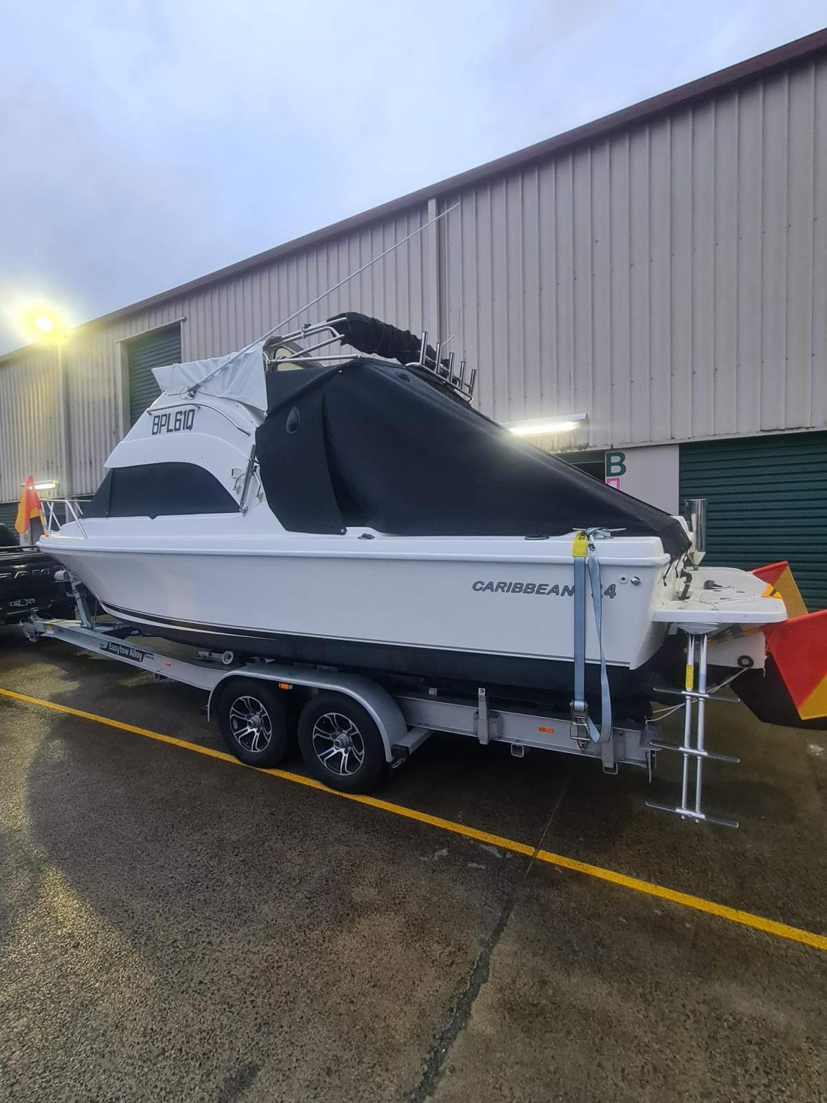 I believe there is only a handful of these flybridge Caribbean boats in diesel on a trailer ever built. 2015 model, been in dry stack to 2020 and then on a new trailer. The ride is classic Caribbean. Historically the older C23Fly was on a steel trailer, and the advent of aluminium trailers around 2005 allowed Caribbean to build the 24 foot and grow from 2.5m to 2.7m wide and from 150 to 300 litres or fuel and stay under 3.5Ton in weight. I have owned a C23 fly and I can tell you the C24fly is a much more capable boat and much more stable and the flybridge works a lot better. The fishing position at the back corner is much better. The first see will buy. Located Tweed Heads, NSW