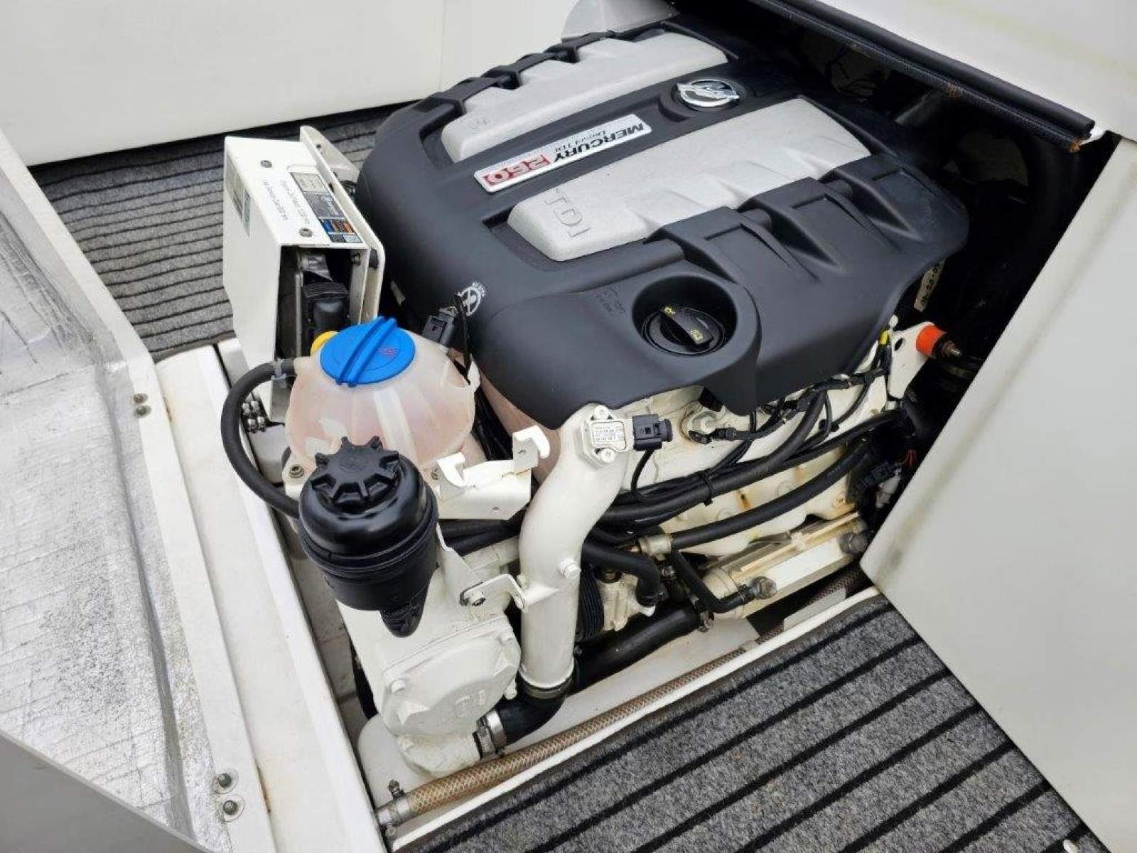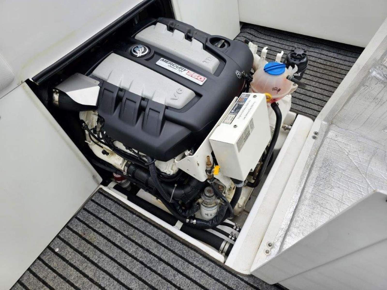 260HP turbo diesel Mercruiser, about 1,000 hours. Serviced August 2025, about 20 hours ago. Very efficient. A lot safer than petrol.