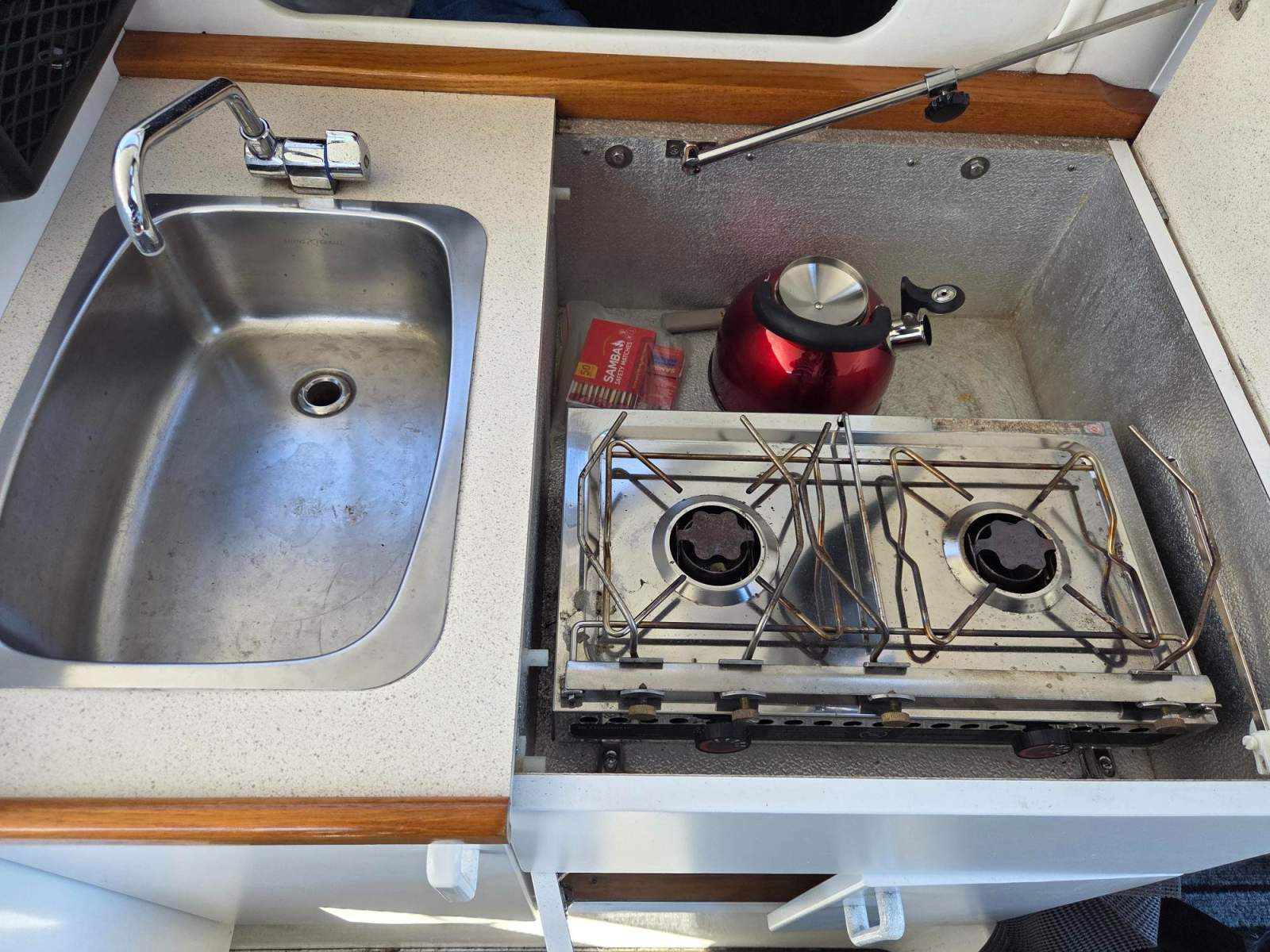 Metho original stove in good working condition, cutlery and kettle.