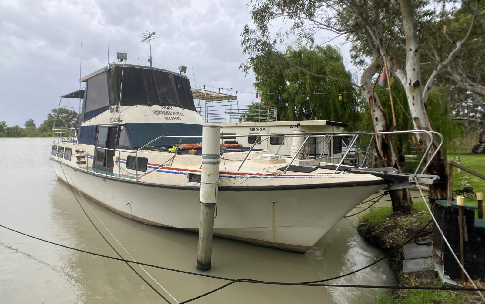 Compass Rose is a custom-built vessel by Neil Organ of Blue-Sky Marine. This 1985 Executive 50 Series fibreglass flybridge cruiser was once an impressive sight on the Murray and, with some dedicated restoration work, could be returned to its former glory. The previous owner lived aboard and, due to health reasons, was unable to maintain the vessel to the level required. It is now priced to sell, offering an excellent opportunity for a new owner seeking a rewarding project with strong potential.