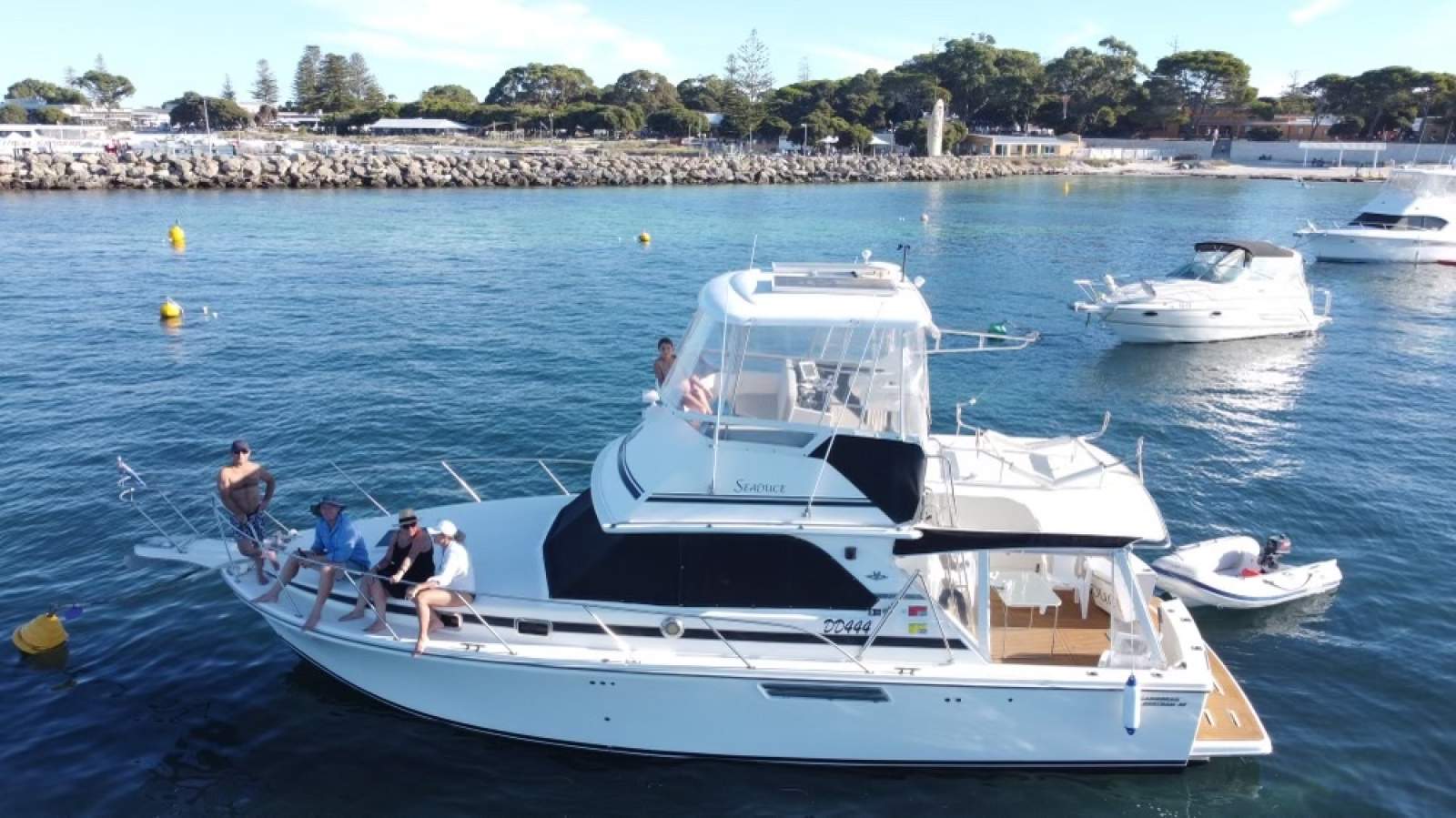 With the Fully covered Cockpit, it also stows the tender 5hz up out of the way, and is launched and retrived via an Electric winch in the Stainless Steel davit arm.