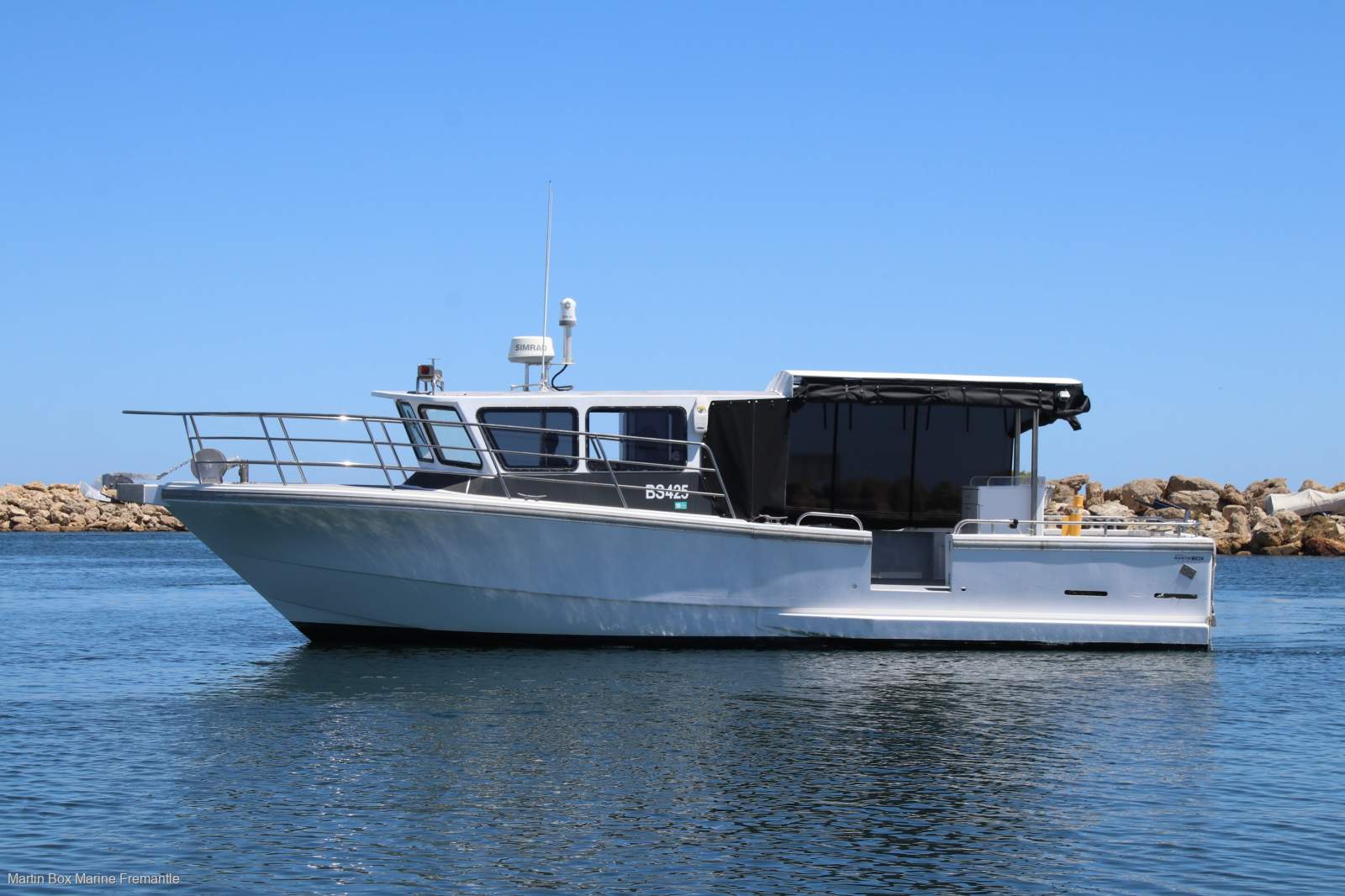 If your requirements are for a vessel that won't let you down in the rough stuff, then this Gavin Mair designed and commercially constructed WA built Marko is as tough as they come. Powered by an Iveco FPT 450Hp straight six diesel installed in 2014 with only 1475 hours, reliability and economy is assured with comfortable cruising at 16 knots and a run home speed of 20 knots. The impressive array of electronics are up to date and include FLIR night vision and twin Simrad touch screen units providing dual control over the GPS, Radar and Sounder. Anchoring is made easy with a fast retrieve 24v drum winch and heavy 10mm chain extended by 50 meters of rope for safe overnight stays. The expansive deck has a full length hardtop and is the perfect fishing or diving platform and offers plenty of room to move when entertaining or overnighting with a few swags on the deck. For the skipper there is a forward V-Berth and a marine toilet will keep all family members happy. There is a lot to like about this visually striking craft and once underway, you will truly appreciate it's impressive engineering and responsiveness. This superbly presented coastal explorer is an extremely capable vessel in all conditions. (Suit buyers of Randell, Precision, Steber, Millman, Westcoaster, Peter Milner and Bertram)