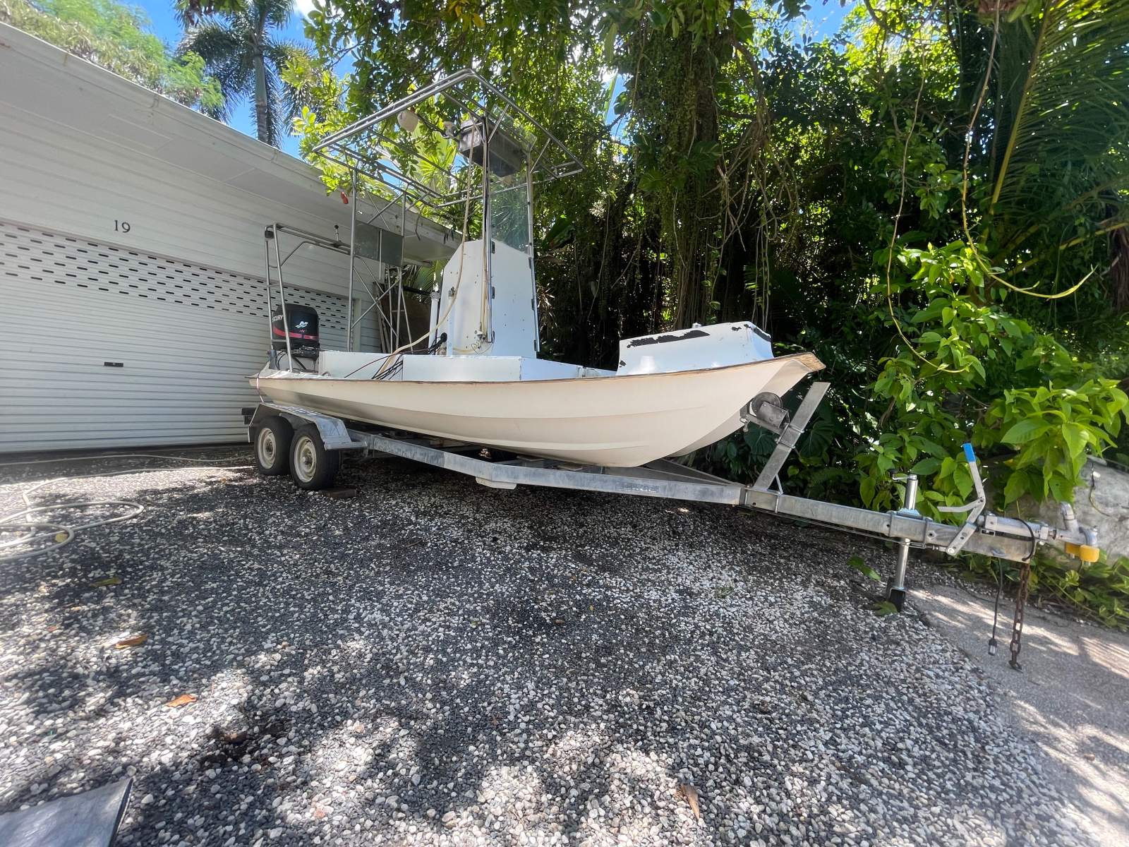 Rated for twin engines (up to 2 × 90hp) - currently fitted with one Mercury 90hp that has very low hours but needs parts and servicing - have not attempted to start it up)