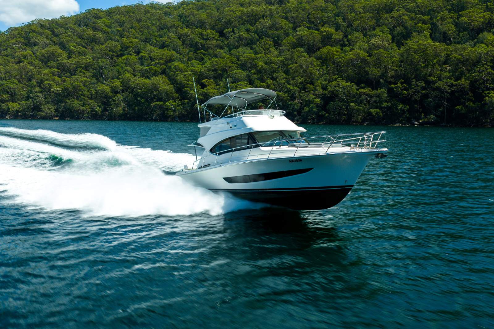 Step aboard the exceptional 2019 Riviera 39 Sports Flybridge, a premium Australian-built motor yacht that perfectly combines sporty performance, luxurious comfort, and practical cruising capability. Measuring 43 foot overall with a wide 4.26-metre beam, this elegant flybridge cruiser delivers generous interior volume, superior stability, and effortless handling.