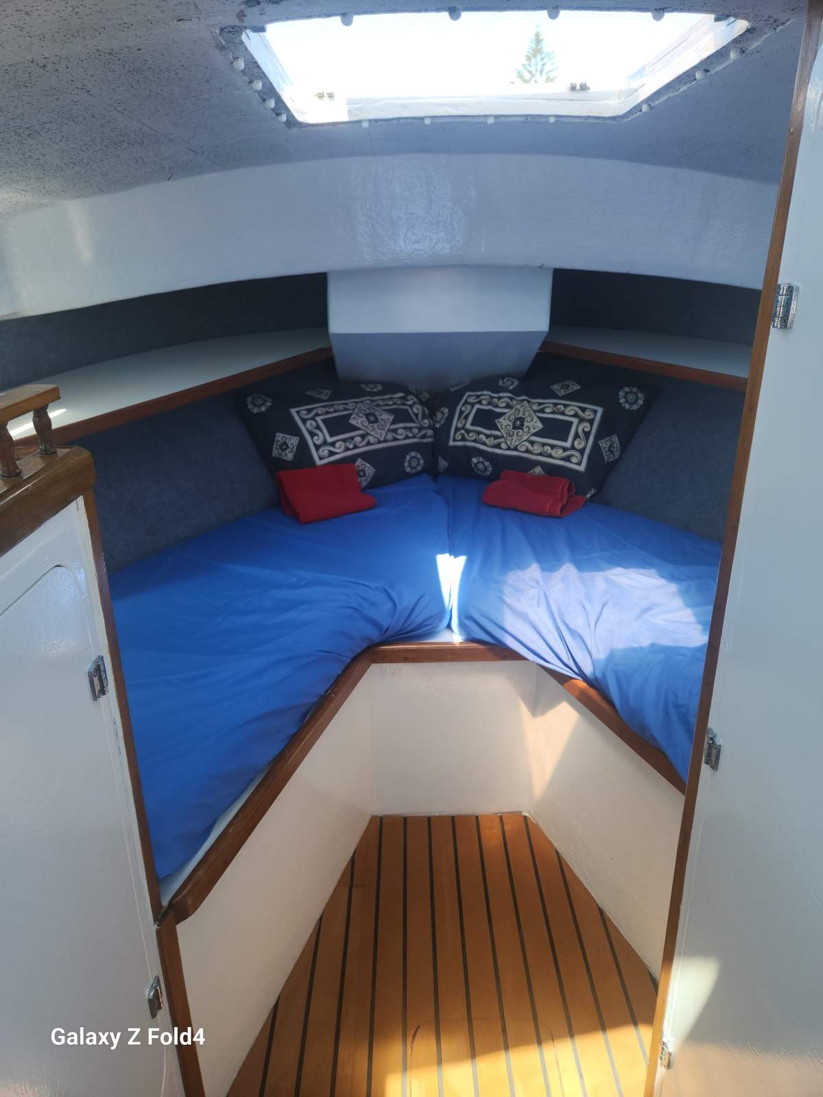 o Can sleep 4: V berth forward, convertible double in cockpit