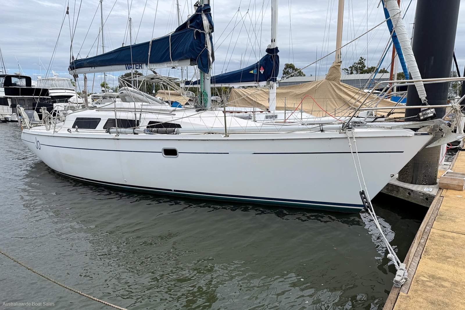 Reluctantly for sale due to health reasons this one owner boat meets the needs of both the casual competitor or sailing family. Jo is 2005 performance cruiser offering a delightful compromise between a competitive turn of speed and cruising comfort. Above decks she's all business with a low profile cabin top, two-speed self tailing winches, adjustable backstay, prodder for her asymmetrical and a well laid-out cockpit for your crew to show off their talents. Below decks she presents a spacious, high quality, open plan fit out with good natural lighting and ventilation, simple but stylish joinery and quality soft furnishings. Whether it's taking the family on a weekender or extended cruise; or club competitions with your crew this 340 should do the job nicely. Her sail wardrobe includes both an asymmetrical and symmetrical spinnaker, her engine: a 20hp Yanmar sail drive in excellent condition with minimal hours, autohelm and a sensible 1.7m draft. Please phone Australiawide Boat Sales in Manly Qld to arrange a suitable day and time to inspect.