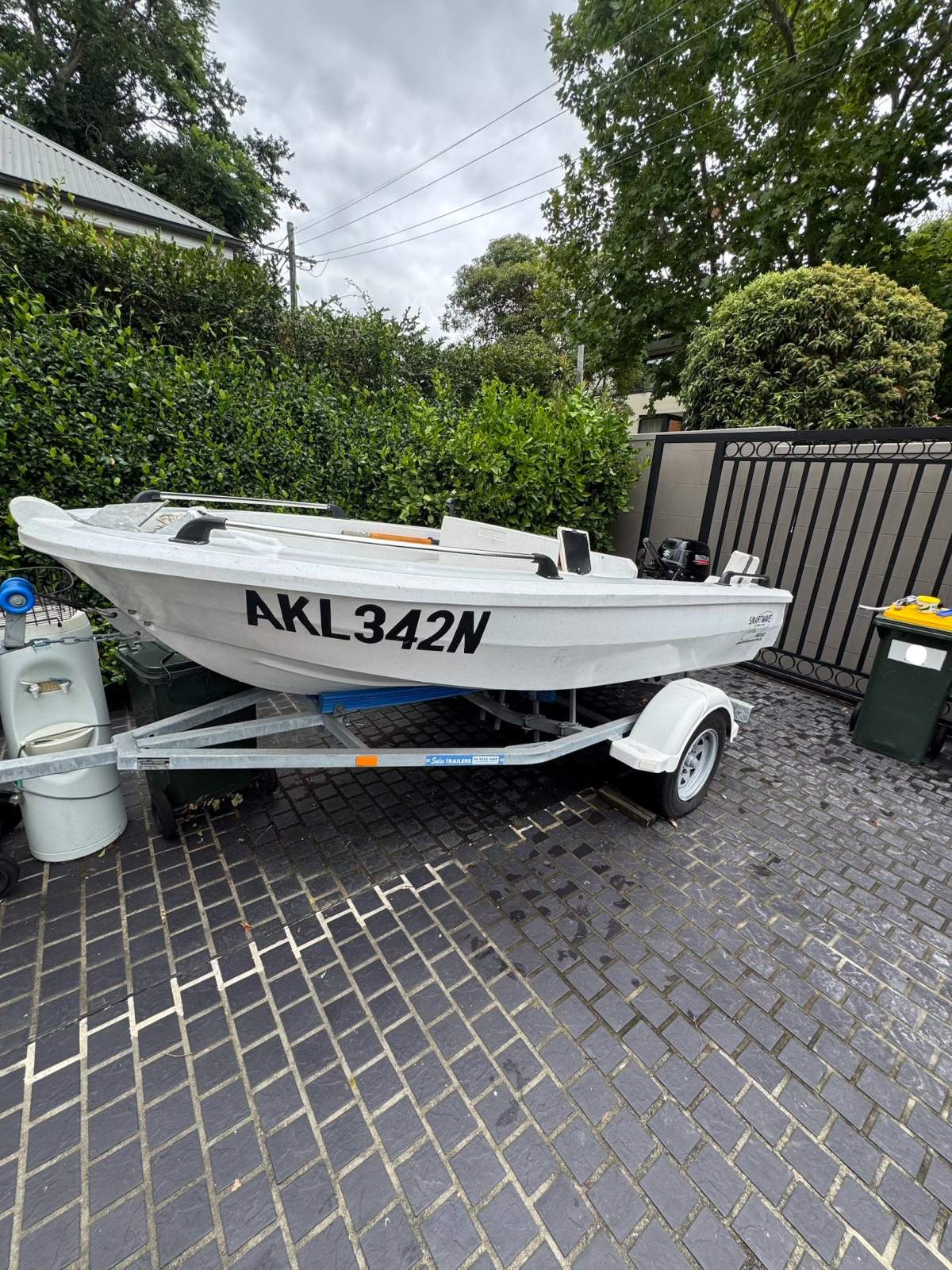 Fitted with a 15hp Suzuki 4-stroke outboard, recently repaired and in working condition. Reliable and fuel-efficient for this hull size.