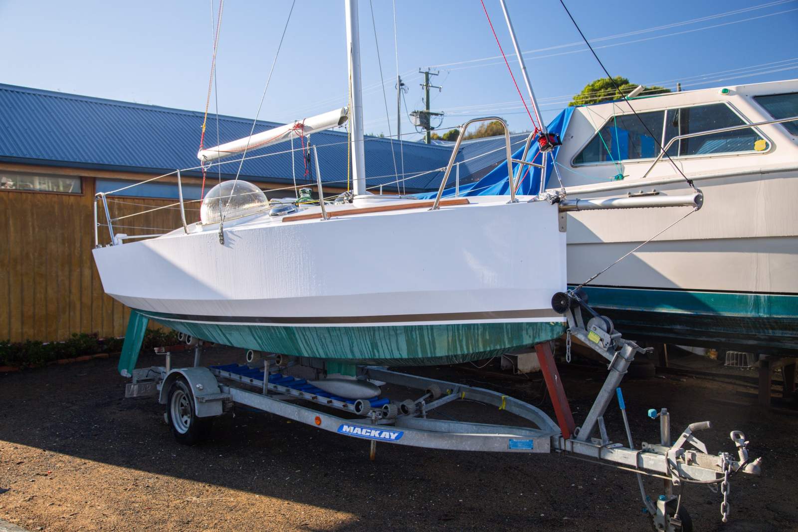 "Myska" is an impressive example of the design. Having been built by the owner, and then finished to a very high standard by Able Marine, it is ready for then next owner to add sails and take it on its first adventure! Very well equipped, this package includes a QUALITY MACKAY TRAILER, SOLAR PANELS WITH REGULATOR, TWO LITHIUM BATTERIES FOR EXTENDED CRUISING, PORTABLE TOILET, VHF RADIO, DEPTH AND SPEED TRANSDUCERS, TACTIC WIND INSTRUMENT, PRODDER FOR A CODE 0, HARKEN WINCH AND QUALITY DECK GEAR, the list goes on!